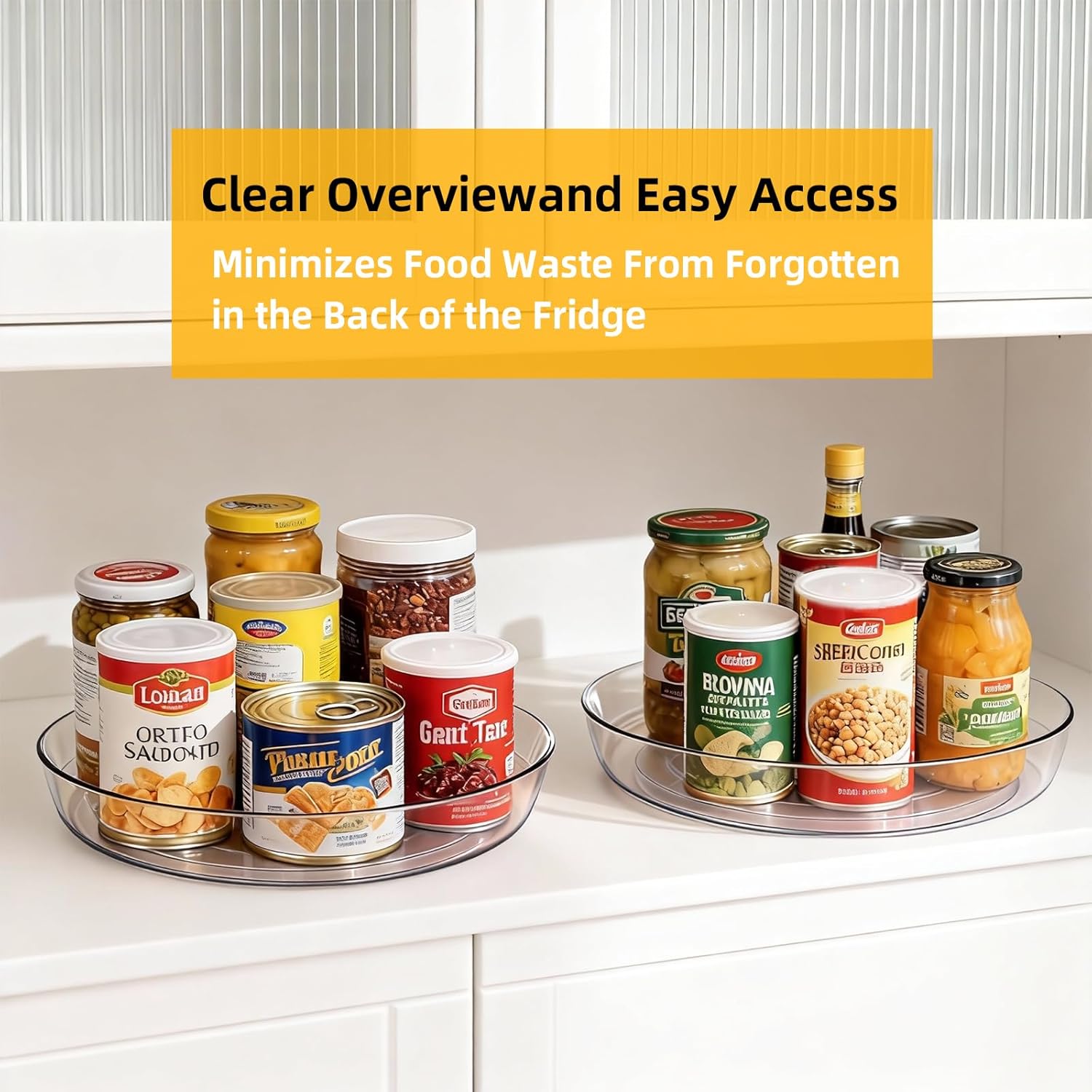 Our clear Lazy Susan turntable brings instant order to your cabinet chaos. See every bottle—from ketchup to cookie mix—at a glance. One smooth spin puts what you need right at your fingertips. No more lost condiments, just effortless access.