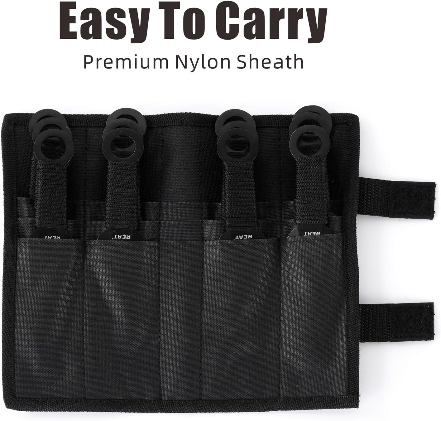 Safe and Portable: The set includes a dedicated sheath for safe storage and easy transport, allowing you to carry your knives securely during outdoor activities or practice sessions.