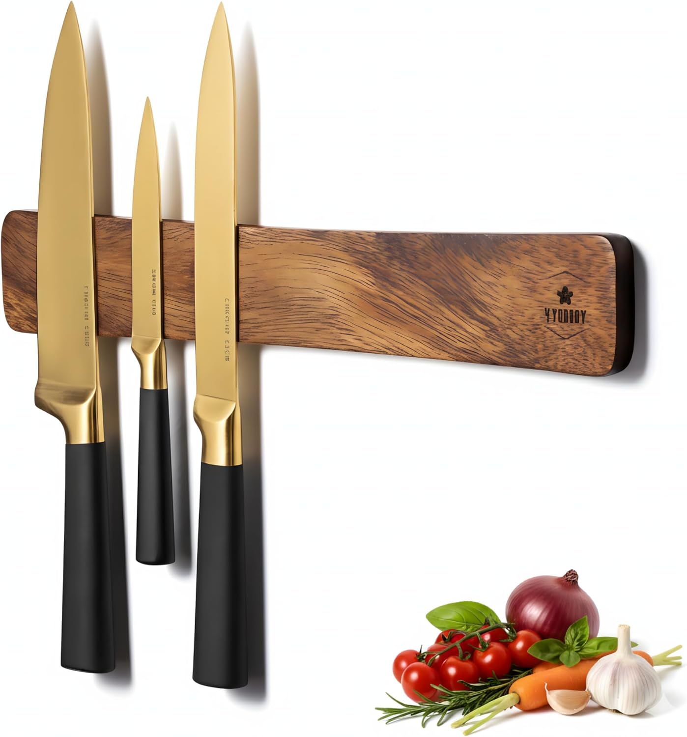 16-Inch YORVOY Magnetic Knife Holder – No Drill Acacia Wood Rack