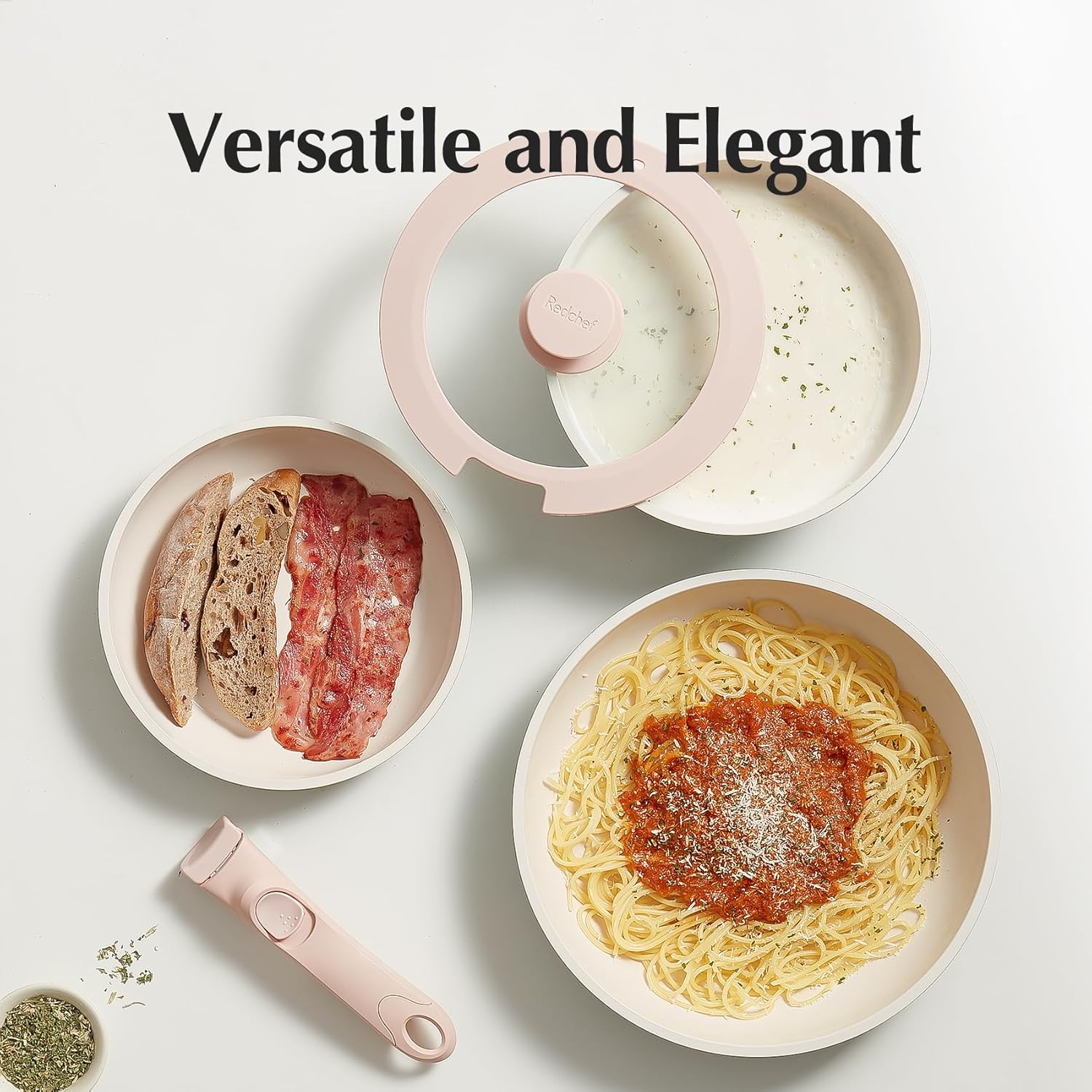 Natural Ceramic Coating: Made of natural ceramic, our Redchef kitchen ceramic cookware set is no Teflon and no PFAS, PTFE, PFOA, lead, or cadmium