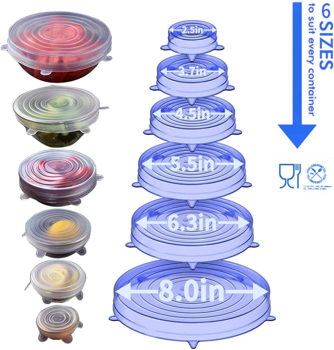 18 Pack Reusable Silicone Stretch Lids for Food Containers – 6 Sizes