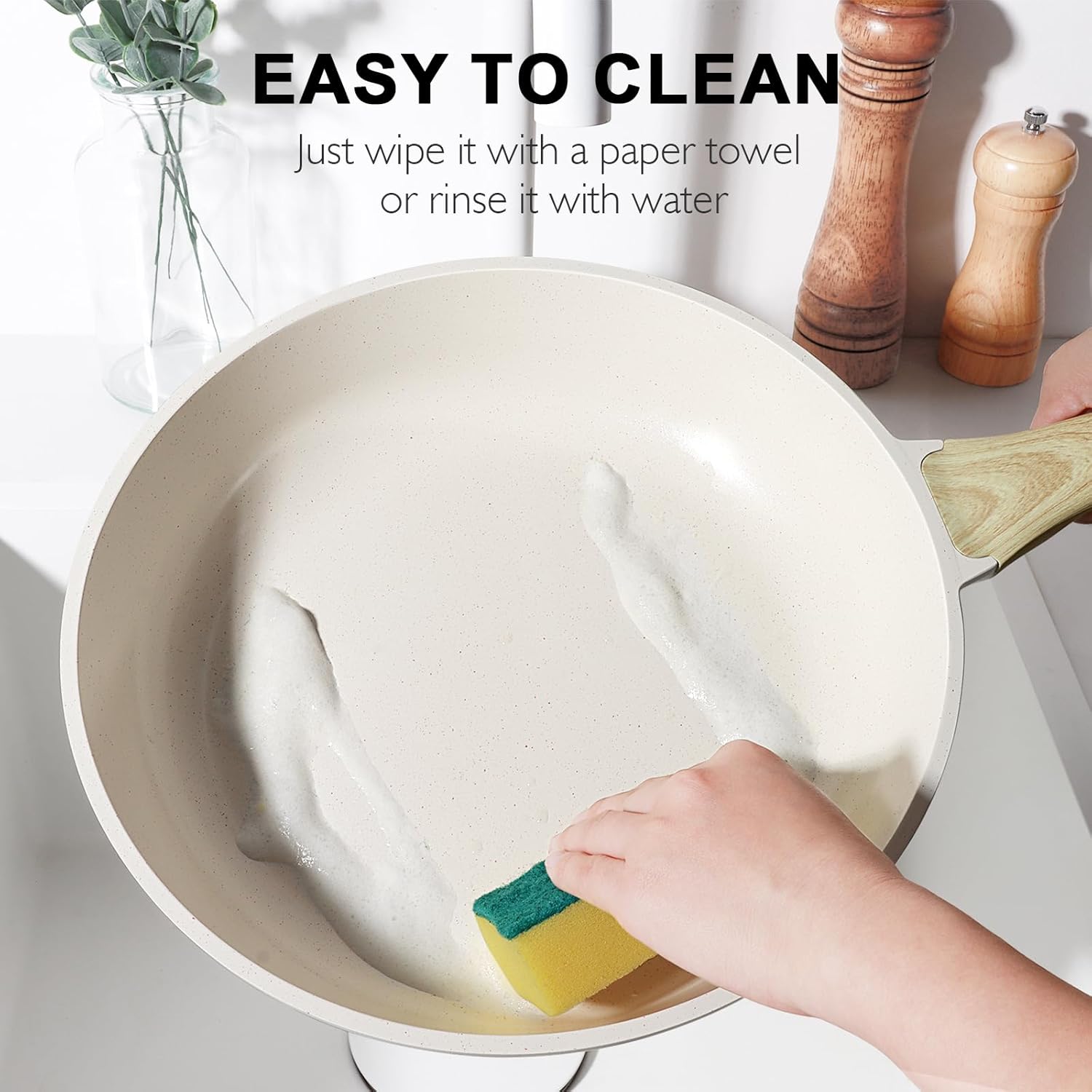 Ceramic Non Stick – Food slides off effortlessly, less oil needed for healthier cooking with this ceramic pot and pan
