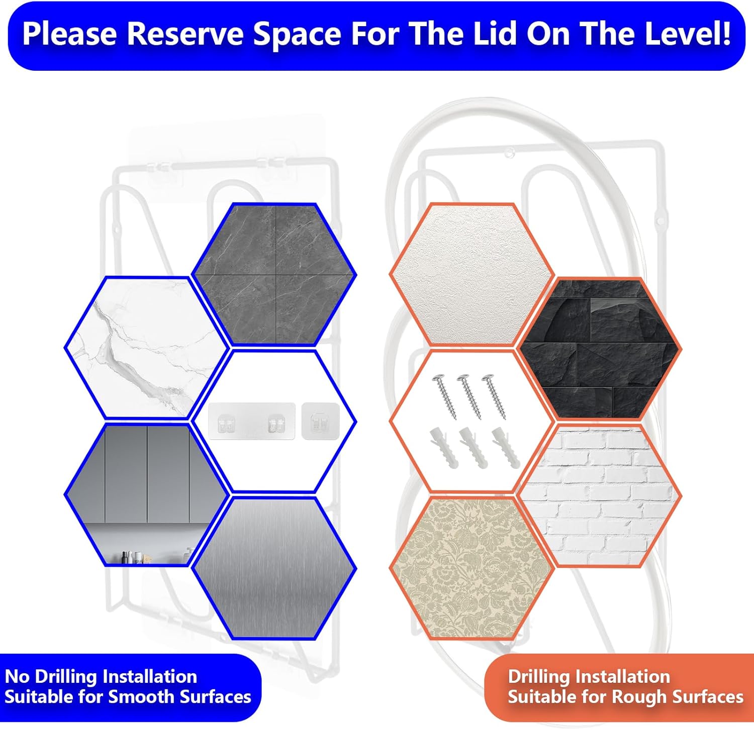 Dual Installation: Stick it to smooth cabinet doors or walls using heavy-duty adhesive (holds 22lbs!), or secure it to textured surfaces with included screws and anchors. Perfect as a cabinet door lid organizer or wall-mounted pan lid holder.