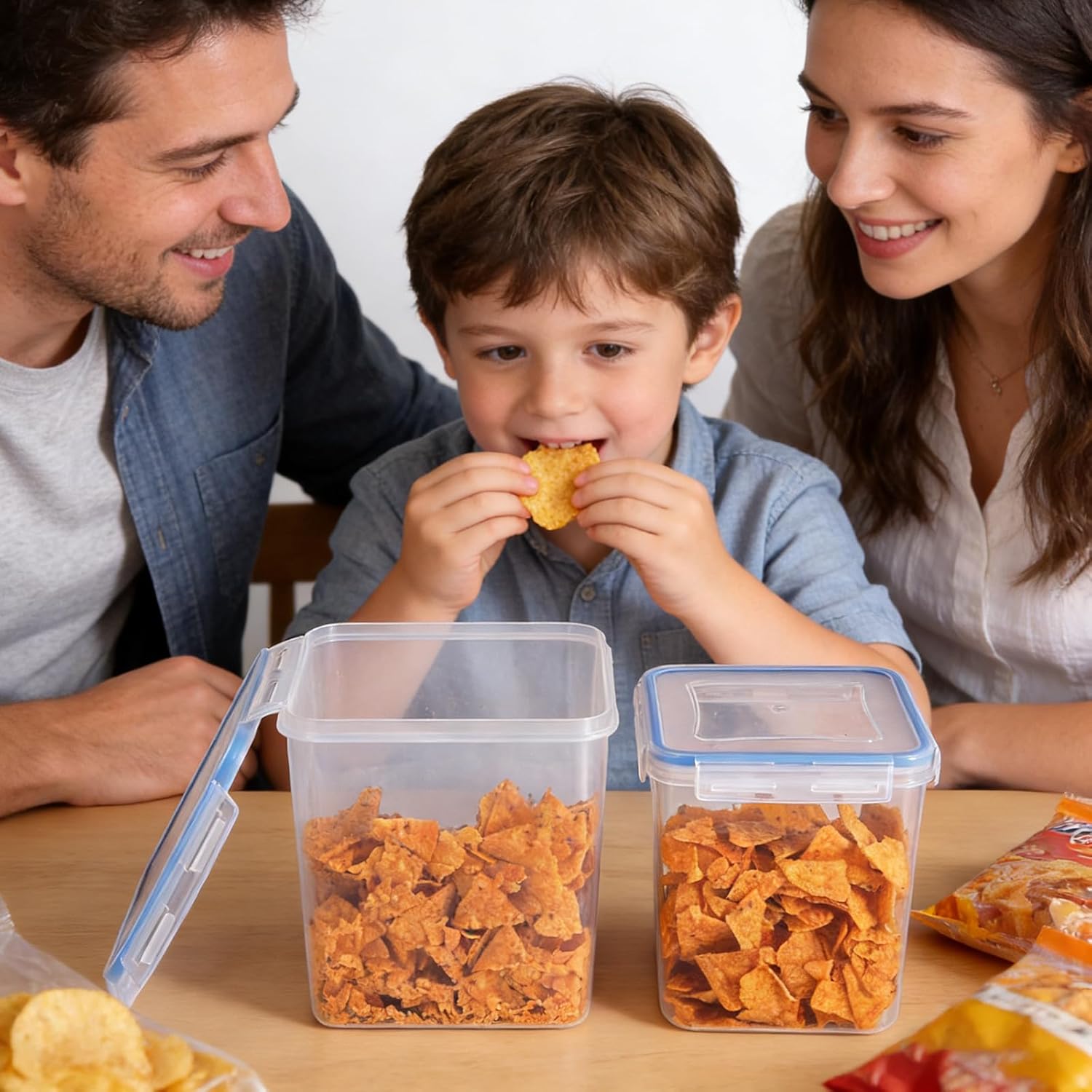 BPA Free and Food Grade Snack Storage Containers: Our chip storage containers are made from eco-friendly materials and are food safe. Your best choice for everyday use and last for years to come. Transparent plastic and you will see exactly what’s in the containers.