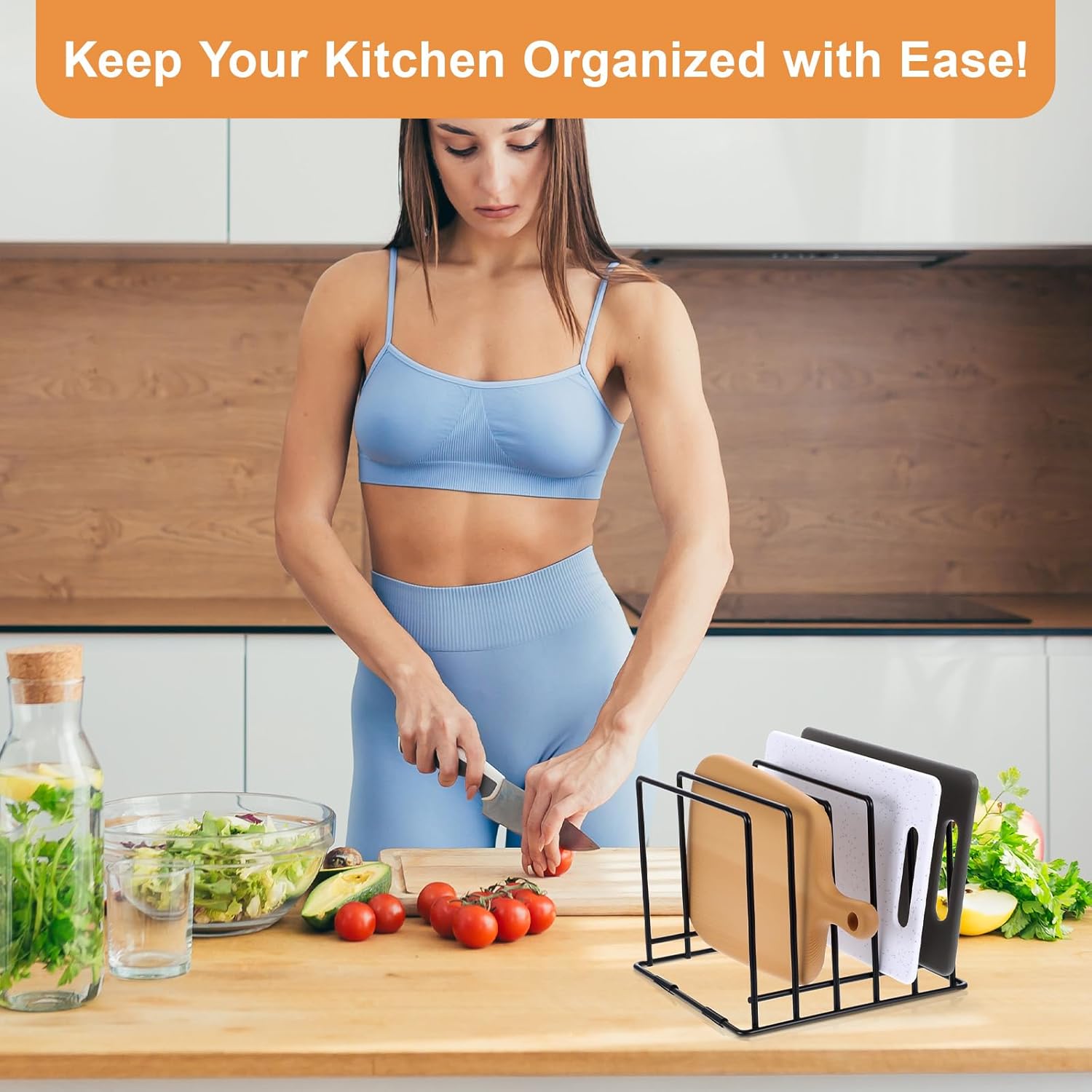 【Non-slip and Stable】This cutting board organizer comes with silicone feet that can be firmly fixed to any surface, non-slip and protect the countertop from scratches. The anti-tip design ensures safety during use, whether placed in a cabinet or on the countertop.