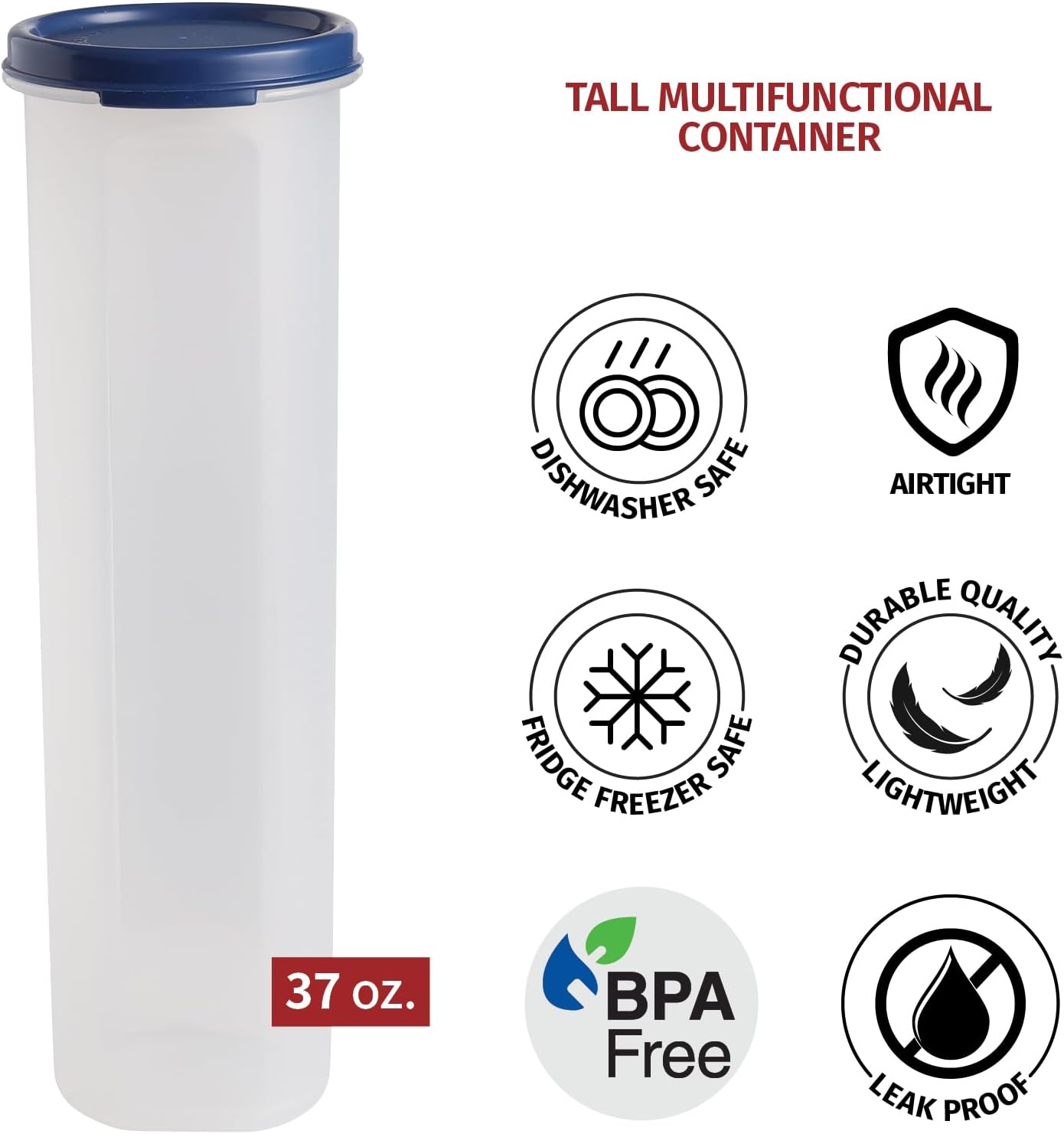 MULTI-PURPOSE, 100% FOOD-SAFE: Whether it’s sewing materials, art supplies, or ingredients, you can CONVENIENTLY STORE WHATEVER YOU WANT TO with this TALL MULTIFUNCTIONAL CONTAINER. Made of 100% FOOD GRADE PLASTIC, it’s highly designed as a STORAGE FOR DRY FOOD, WHOLE GRAINS, NOODLES, PASTA, RICE, NUTS, SUGAR, COFFEE BEAN, TEA, CHIPS, CRACKERS, CEREALS, and more.