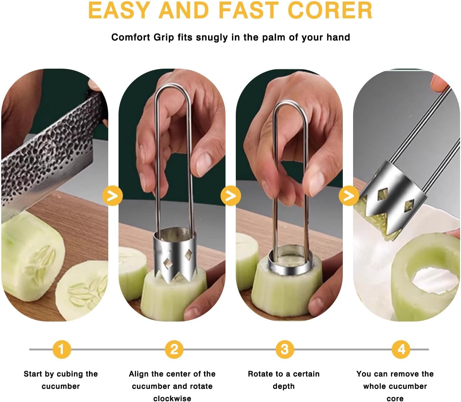 【Fruit and Vegetable Corer】This corer features a sharp serrated tip that effortlessly pierces and removes cores. It works not only on red bell peppers but also on cucumbers, zucchini, apples, and various other fruits and vegetables.