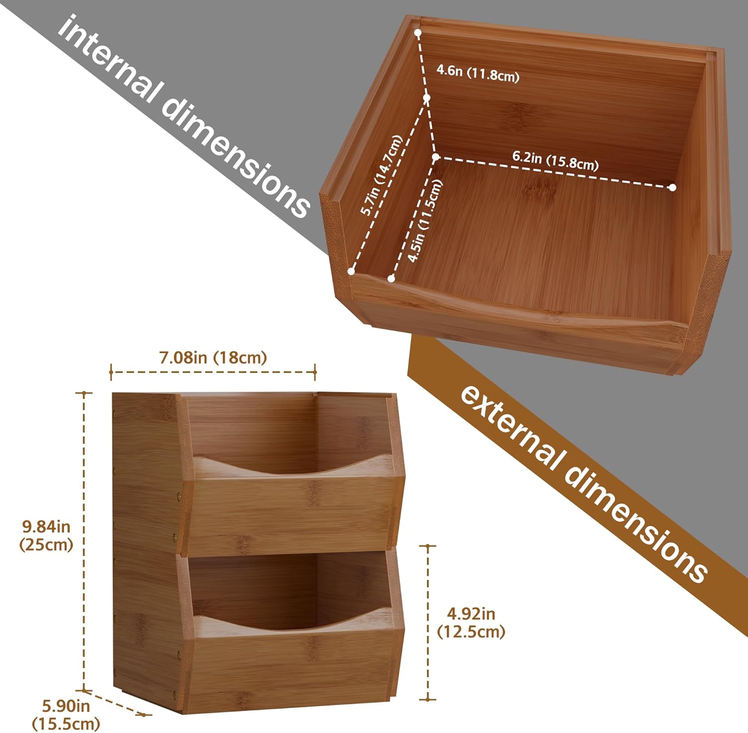 【STORAGE ORGANIZATION DESKTOP】: Pantry storage bins are only suitable for small items, such as snacks, tea bags, and spices. These stackable boxes can be used individually or as a combination of both. Please note the small size before purchasing