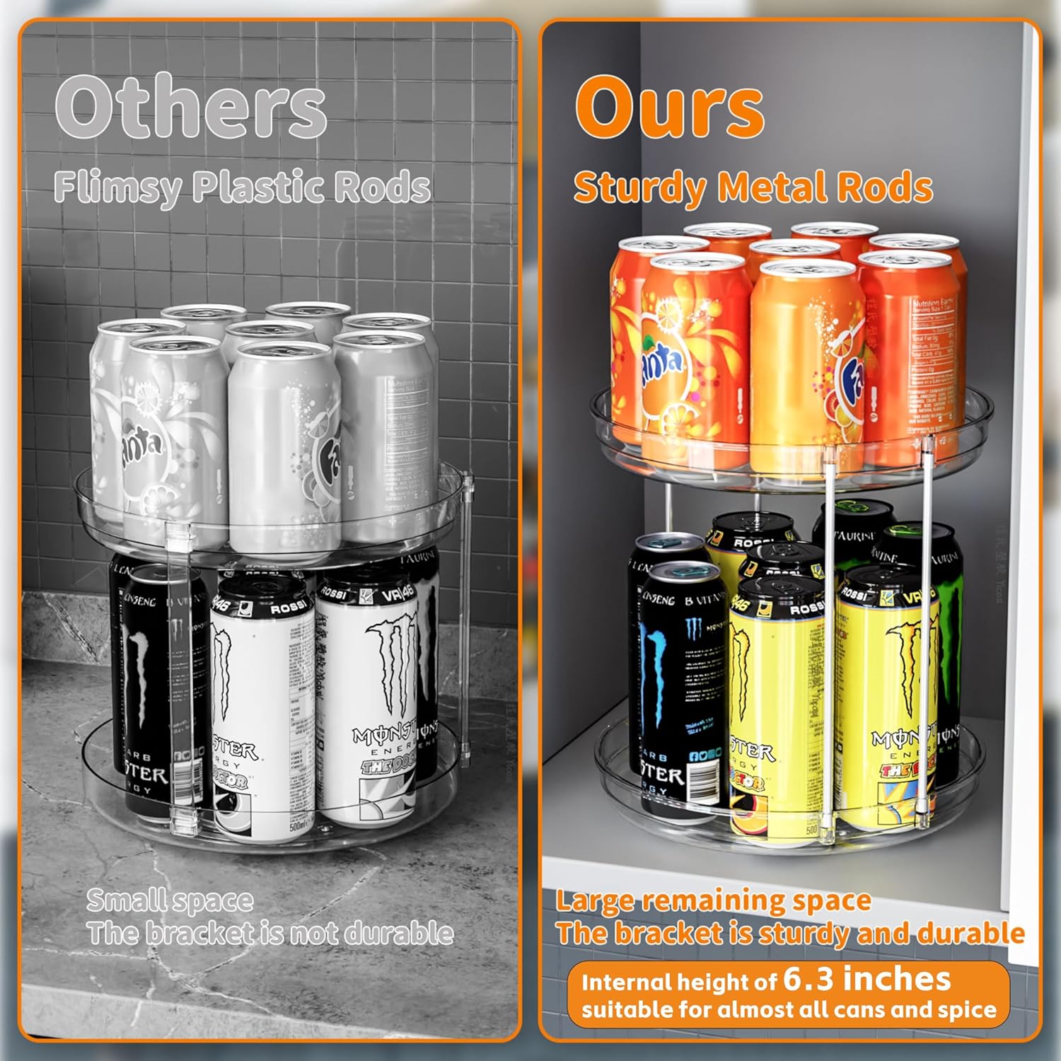 【Customizable Stacking Design】Customize your space by stacking these units into a 3-tier clear Lazy Susan organizer when you buy 2 Sets — well-suited for kitchen cabinet organizer spices or seasoning, cans, beverages, medicine, bathroom counter organizer makeup, perfume, and more