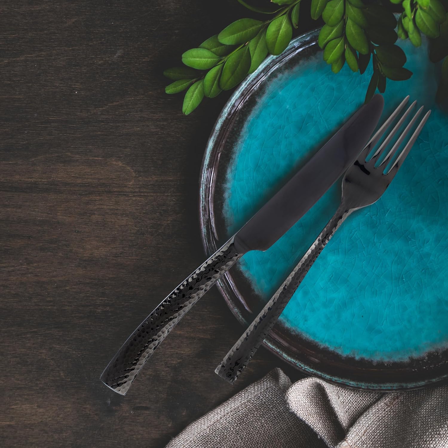 Up the glam factor at your next dinner party with the lustrous gunmetal titanium-plated Paris Hammered flatware set. The exquisitely hammered treatment with Mirror Polished Finish reflects the light to display variations in moody tones that add distinct character and drama to your table setting. Crafted from versatile 18/10 stainless steel, each piece showcases a gunmetal finish featuring a textured handle with handmade appeal.