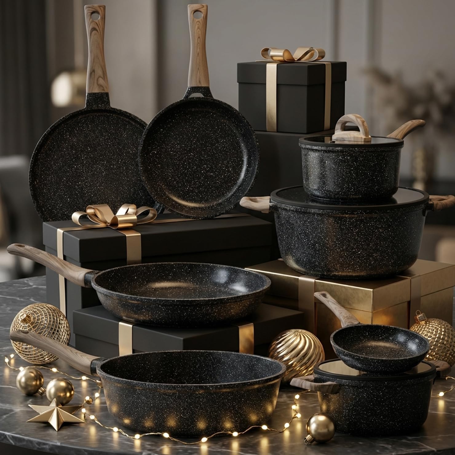 INDUCTION READY & COMPATIBLE WITH ALL STOVETOPS:Designed to work on all cooktops, including induction, gas, electric, and ceramic, making this cookware set a versatile fit for any kitchen.