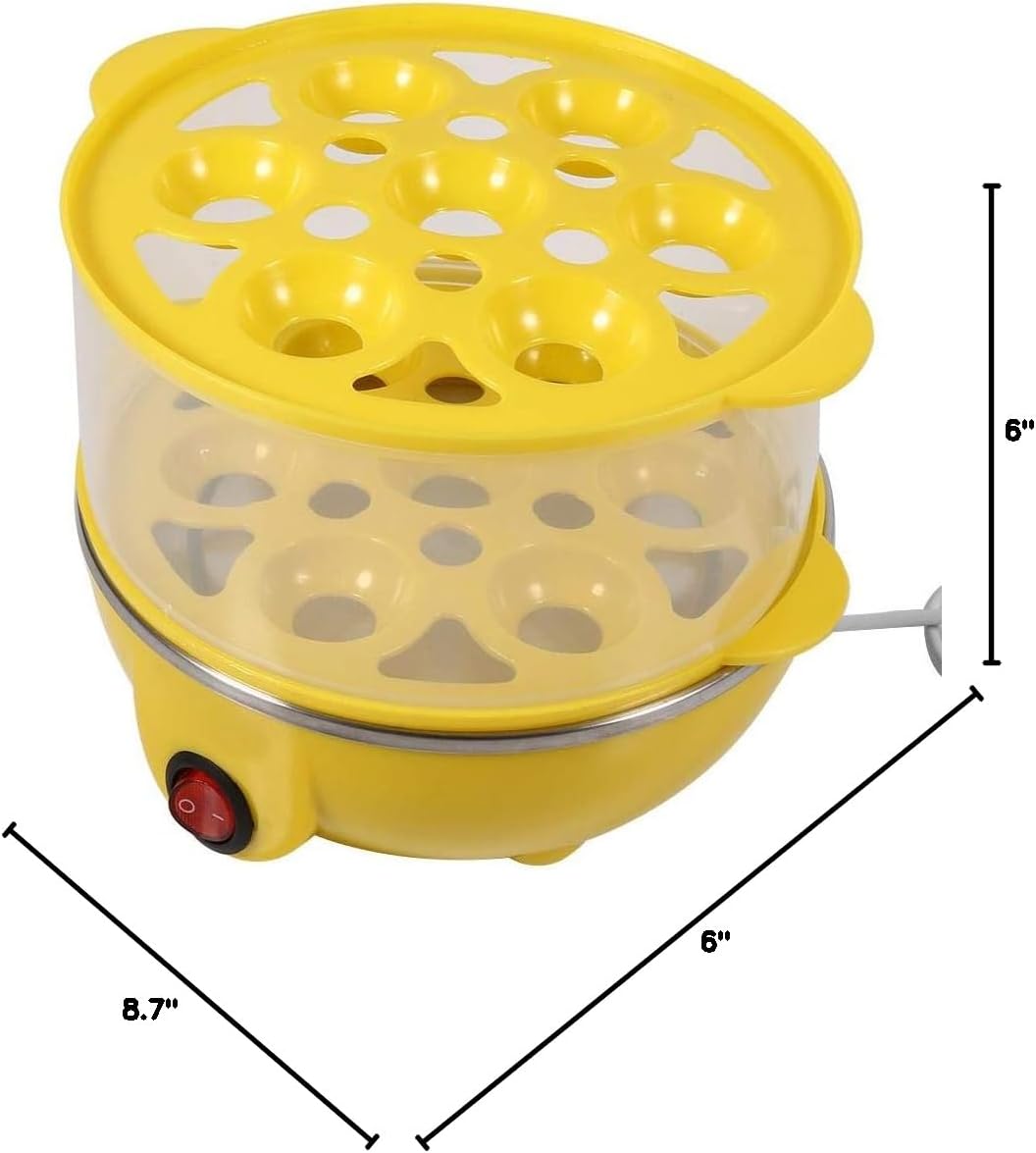 This is electric egg boiler, with double-layer design, it can steam 14 eggs at one time, the egg holder racks can be taken down freely, then you could choose to use single-layer or double-layer steaming rack to meet your need, very convenient