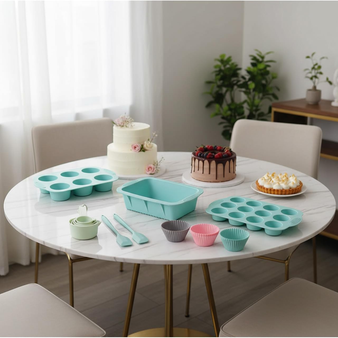Multi-purpose: The set includes a variety of molds for making birthday cakes, bread, cupcakes, and other desserts, Whether for everyday home use or entertaining guests at birthday parties or holidays, it can meet a variety of baking needs