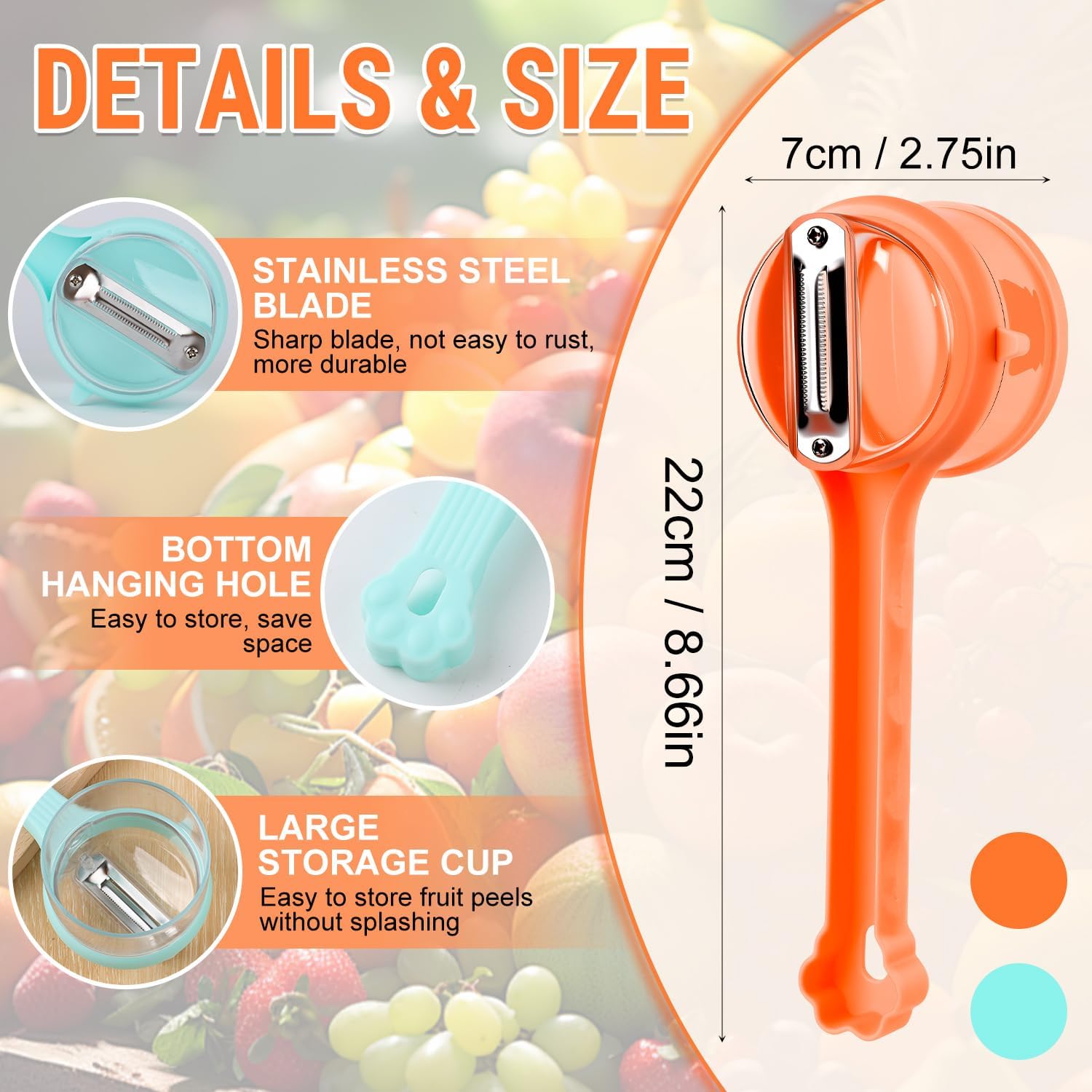 2PCS Kitchen Special Fruit Peeler with Box Storage, Upgrade Vegetable Peeler with Catcher Peeler with Storage Bucket, 2026 New Double-Sided Stainless Steel Multi-Function Peelers (Orange+Blue)
