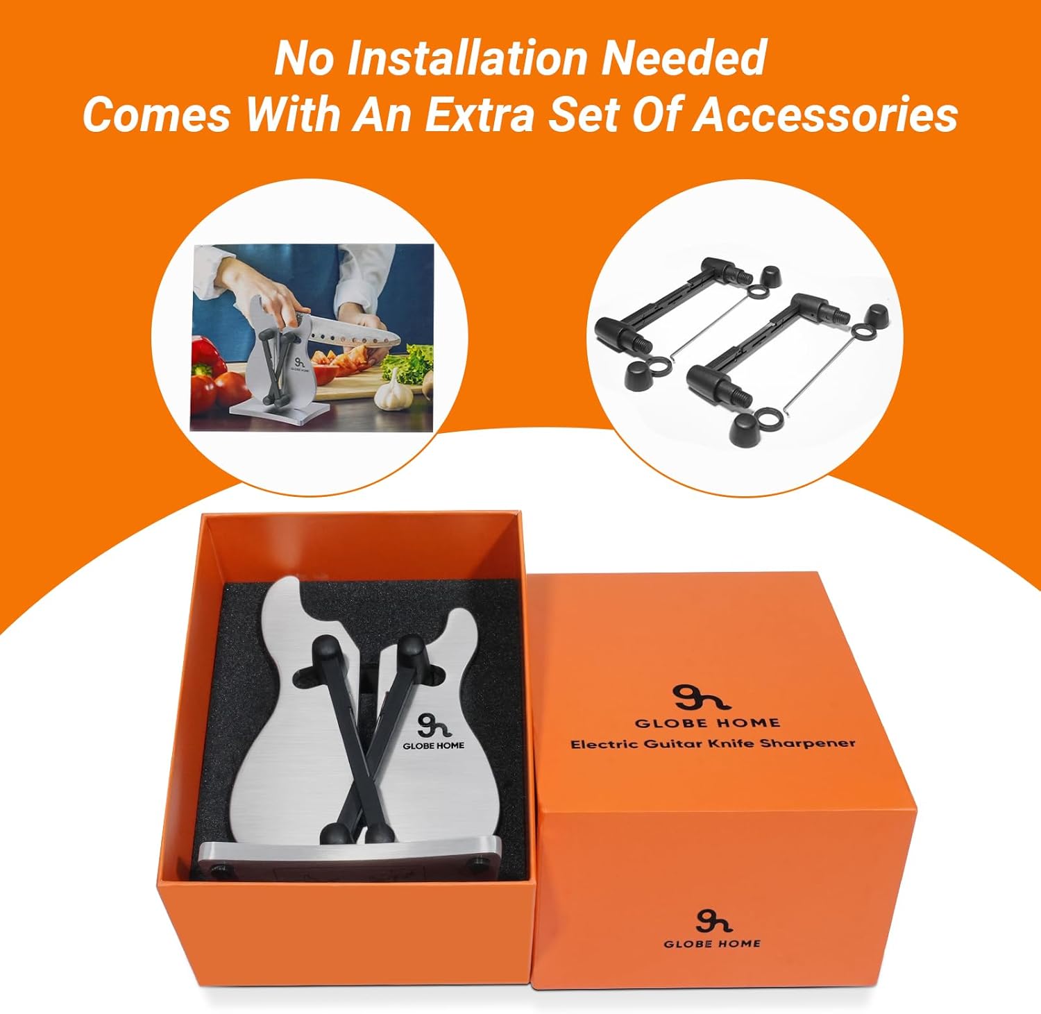 Kitchen Essentials for New Home: Crafted from food-grade 304 stainless steel with a hand-brushed finish, the Globe Home sharpener features dual tungsten carbide arms that auto-adjust sharpening angles. Non-slip base ensures stability