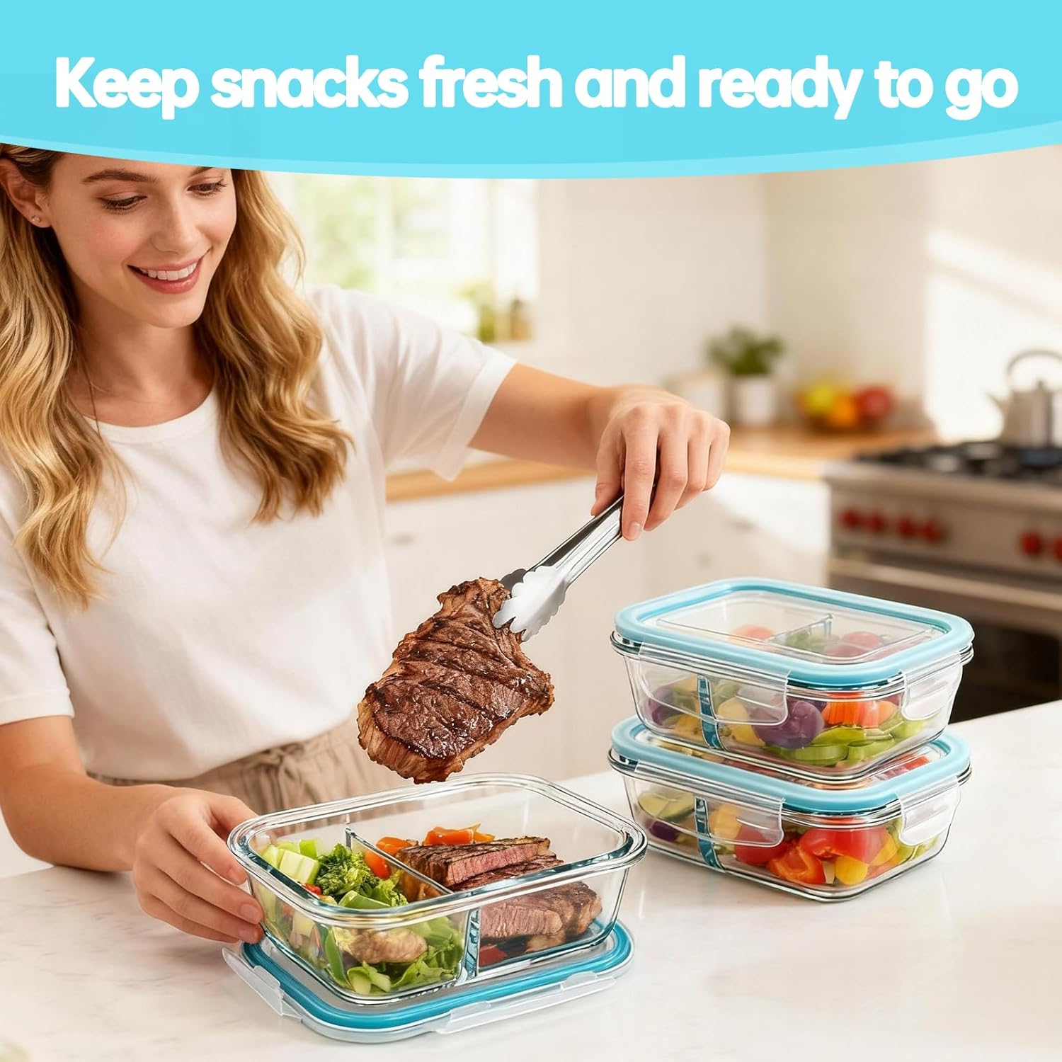 Compact Design – These snack glass containers with lids stack securely when filled, helping you organize your fridge or pantry while saving space