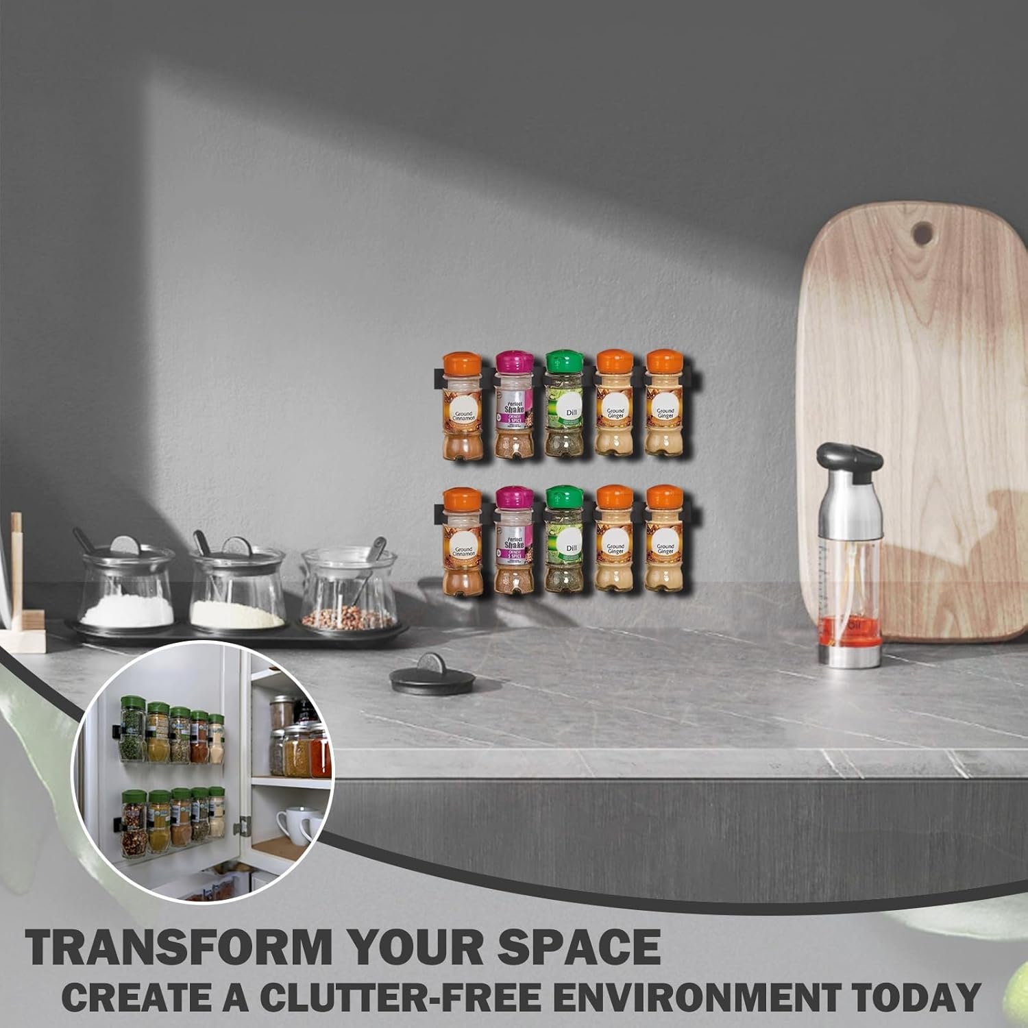 Strong Adhesive and Screws Included – Features industrial-strength adhesive strips and optional screws for a secure hold. Keep spices organized without worrying about clips falling off, even in high humidity