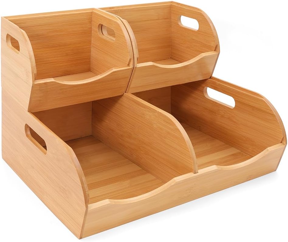 3-Piece Stackable Bamboo Pantry Baskets for Potatoes & Onions