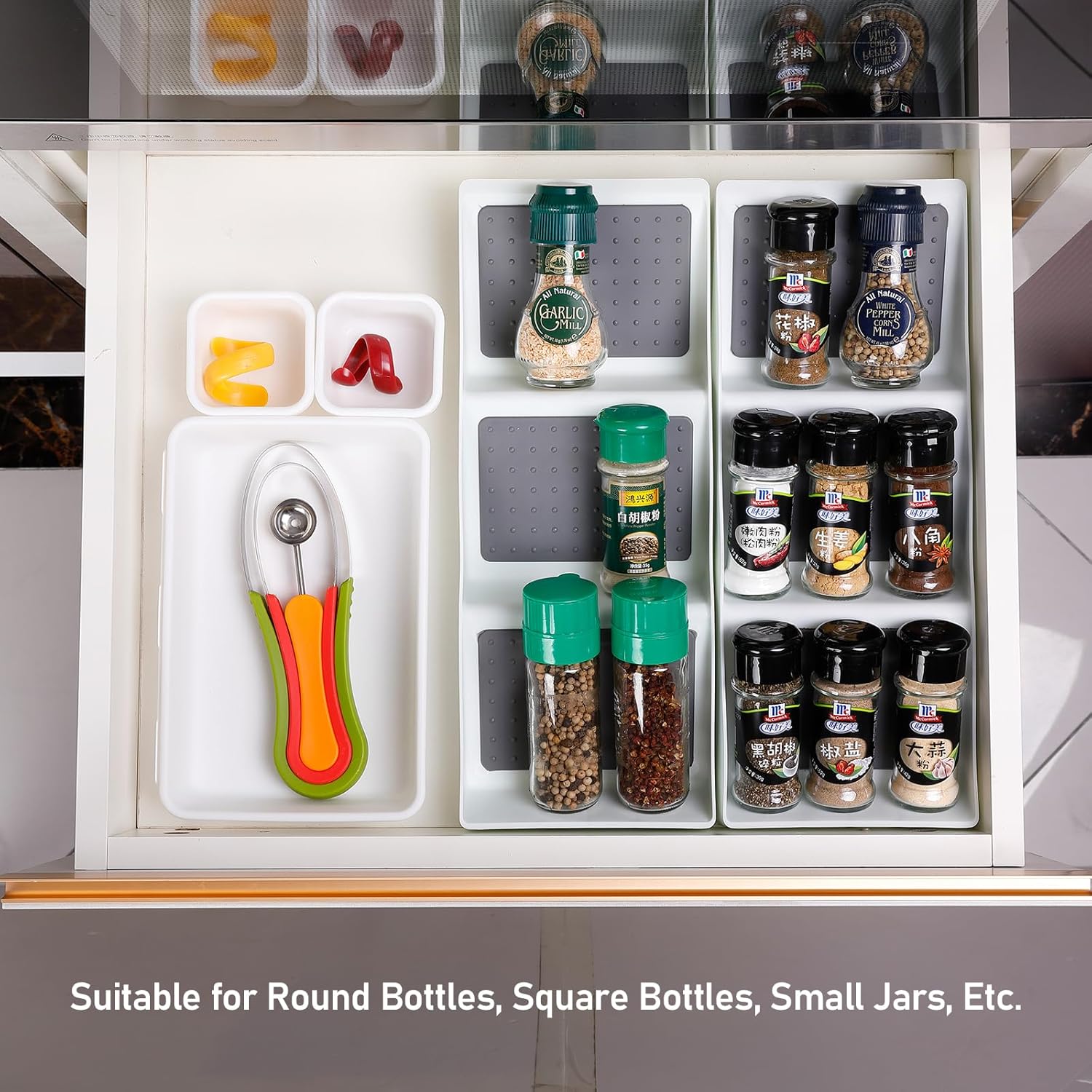 STRONG AND DURABLE: Ideamake spice rack organizer for drawer is made of high quality plastic and silicone, sturdy and durable, waterproof and moisture-proof, with a long service life