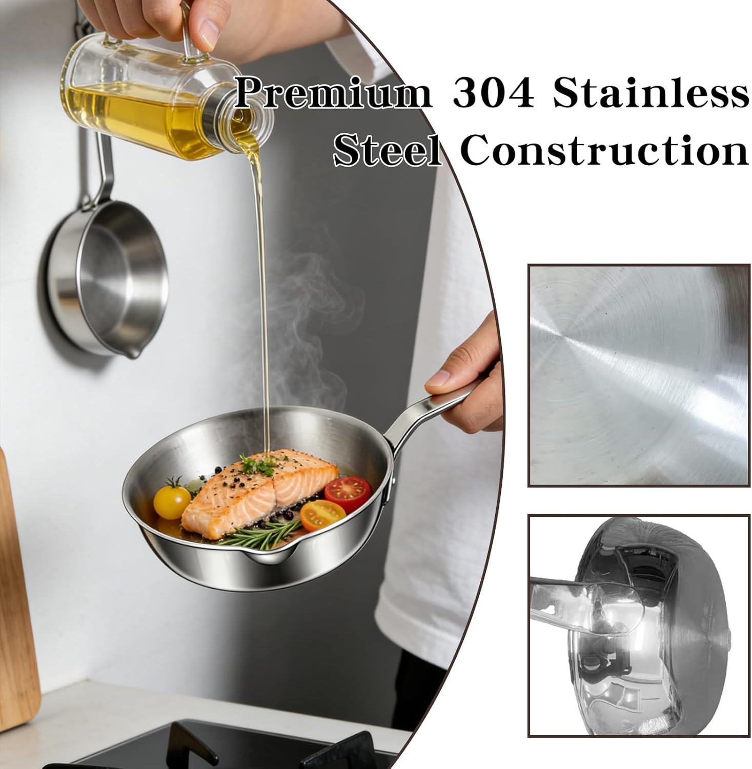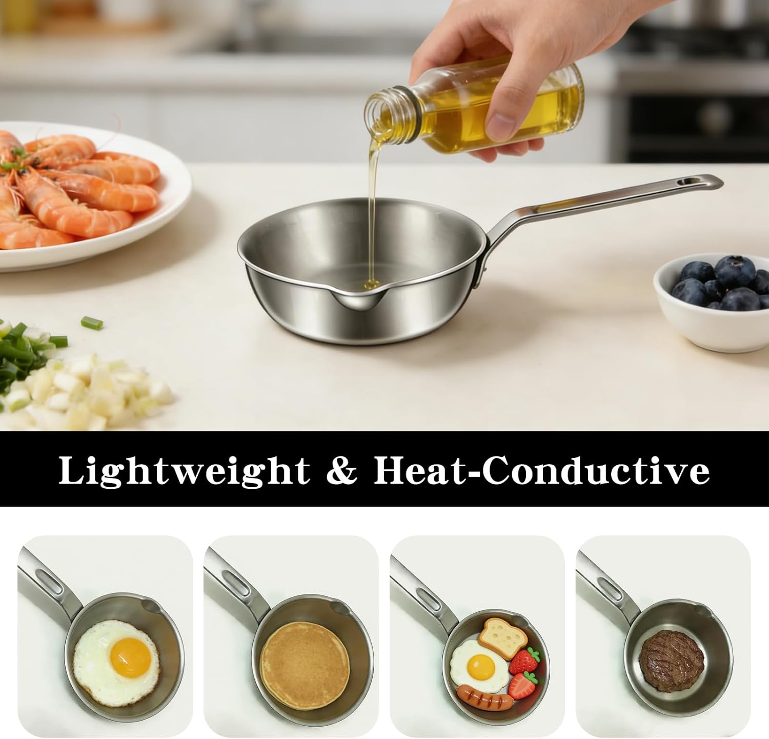 Versatile & Easy to Clean:Beyond being an egg frying pan, it works great for cooking small amounts of veggies, bacon, or sauces. The smooth stainless steel surface prevents food from sticking, and it’s dishwasher-safe for quick cleanup—no tedious scrubbing needed.