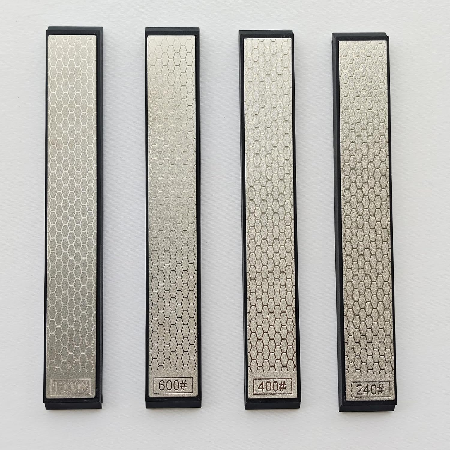【Sharpen Everything: Kitchen to Wilderness】 From chef knives, paring knives, scissors to outdoor knives, axes, fishing hooks, and tools – 4 grits (240/400/600/1000) cover all needs