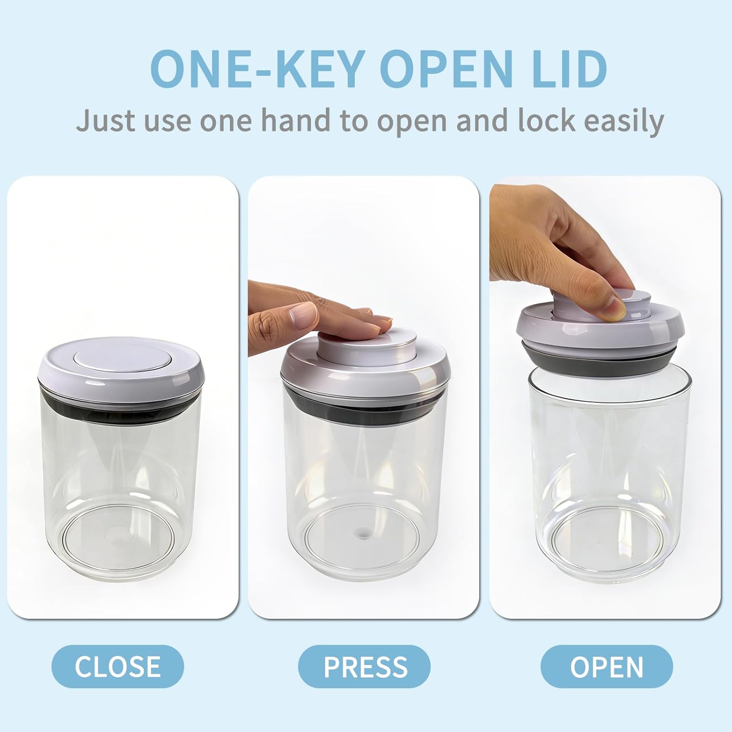 AIRTIGHT SEAL: Pop-button mechanism creates an airtight seal with one touch, keeping dry foods fresh and preventing moisture, humidity and pests from entering