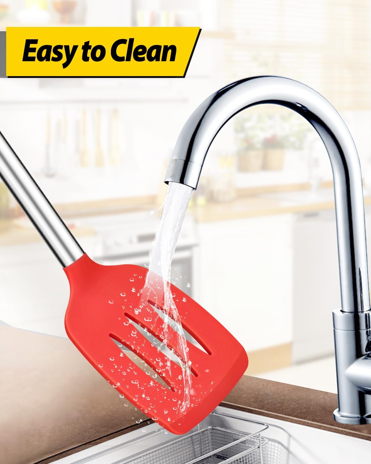 Widely Used : Thin and flexible edge of the silicone turner is ideal for flipping,frying and turning food; Large capacity design of cooking spoon, used to hold food more convenient; Slotted Spoon can quickly drain the water