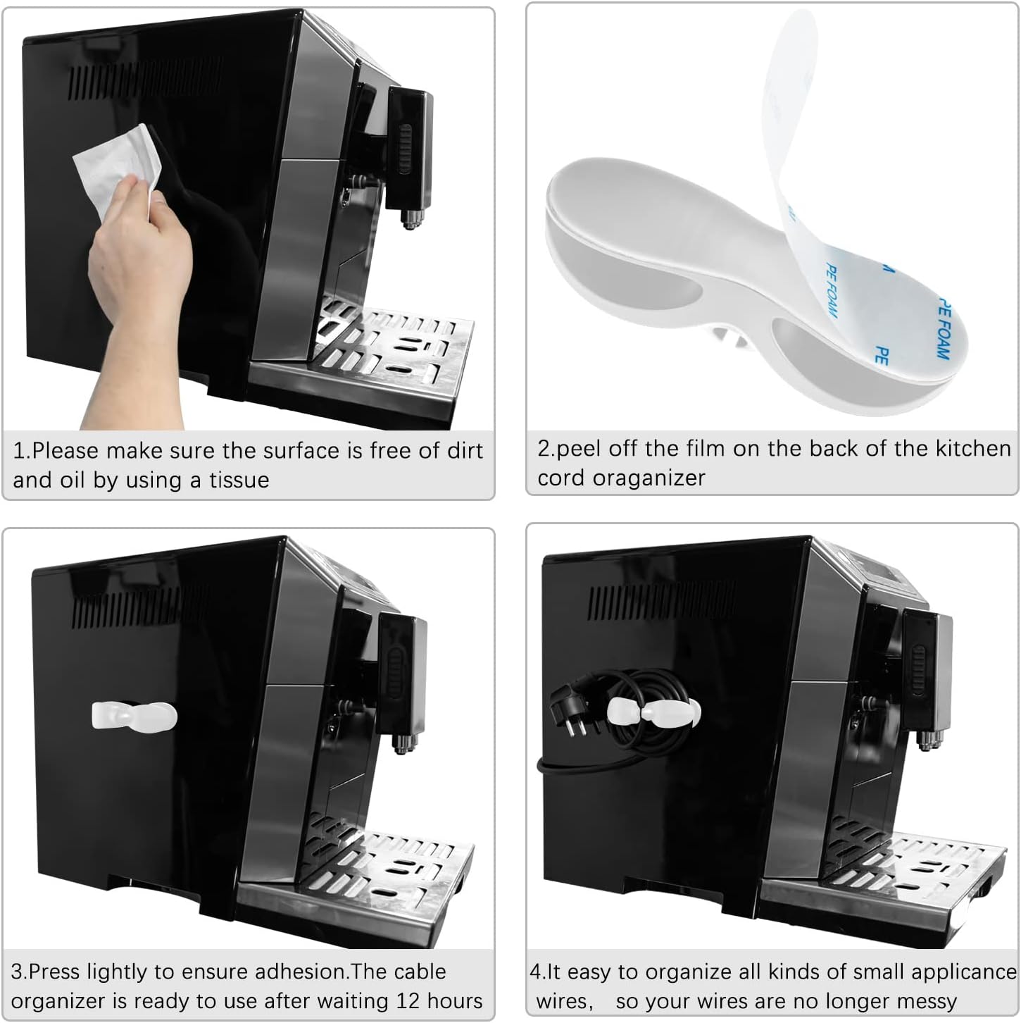 [Upgraded Design] Our kitchen cord organizer has been improved on the problems of unstable adhesion and easy falling off of wires. The winding height and winding area has been increased, and the wires of different lengths can be wound for 5-6 cycles without falling off. Use high-quality foam adhesive, and expand the adhesive area to avoid falling
