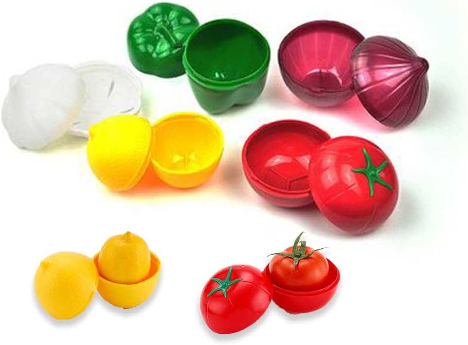 Unique yellow lemon onion garlic tomatoes pepper shape plastic box design is Life-like design for easy identification of contents in Fridge.