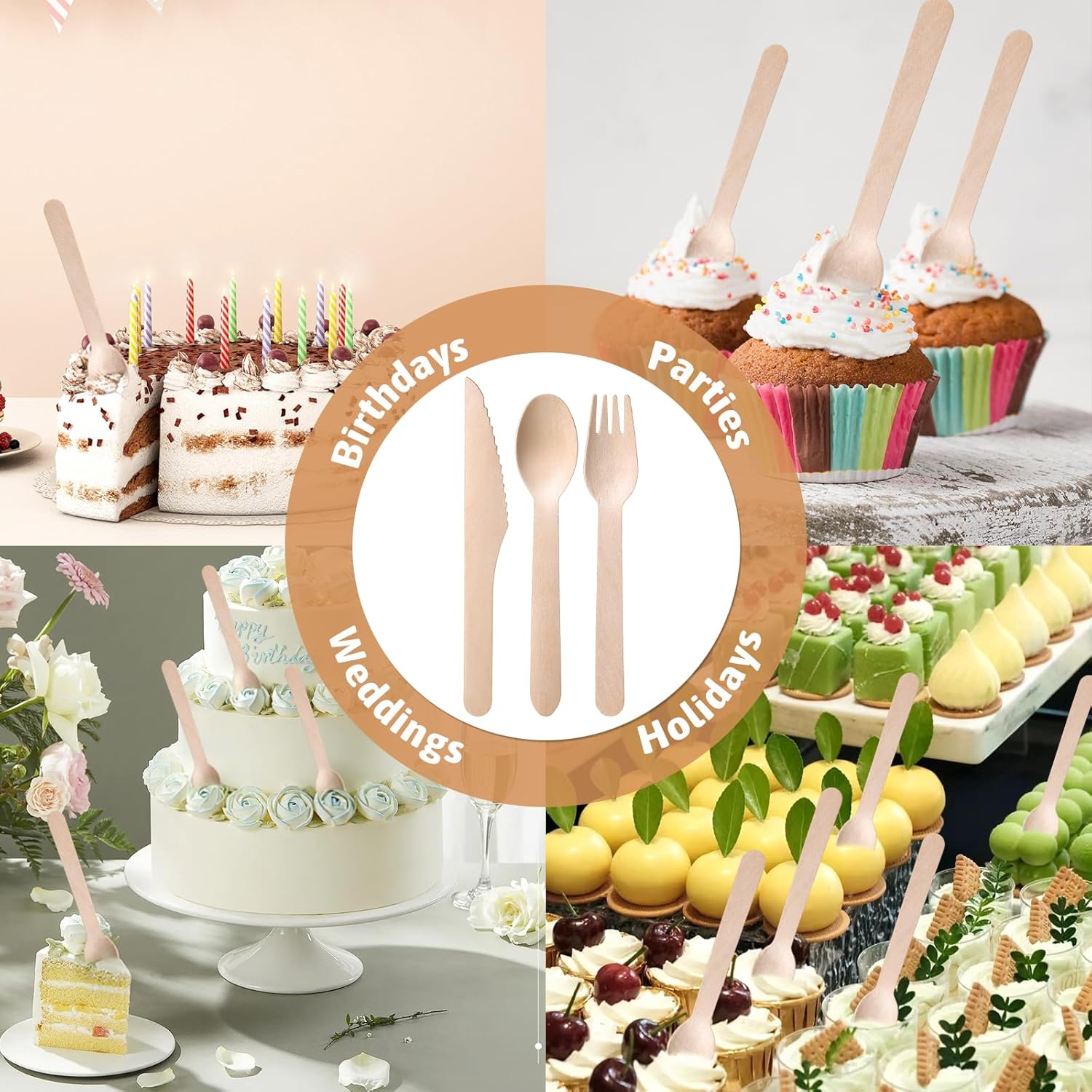 Versatile Event Essential: Ideal for weddings, catering businesses, camping trips, and picnics where disposable convenience meets environmental responsibility. The rustic wooden appearance elevates table settings while demonstrating your commitment to sustainable practices to guests and clients.
