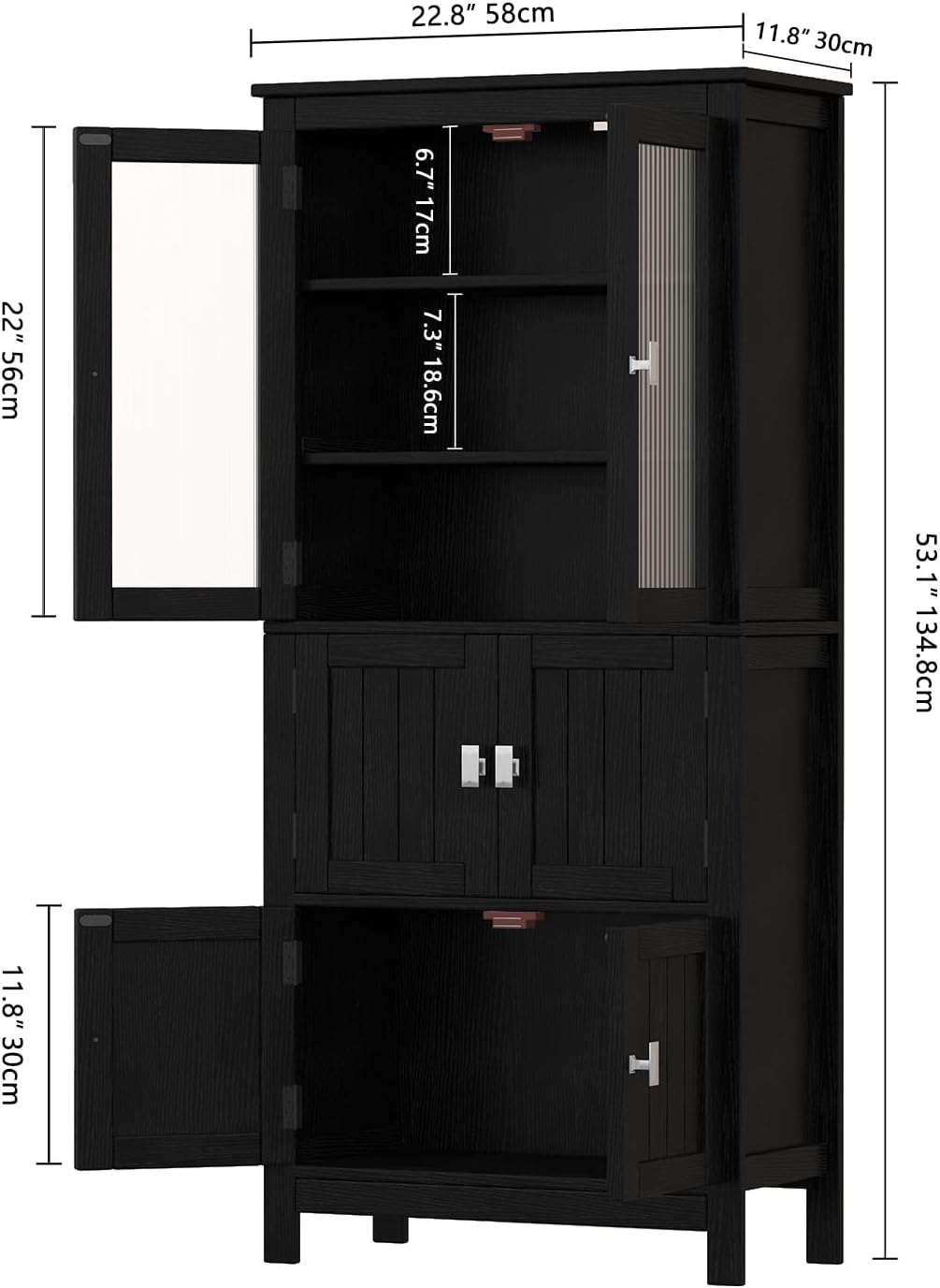 Compact and Efficient Use of Space: With dimensions of 22.8″ W x 11.8″ D x 53.1″ H, this storage cabinet is perfect for small bathrooms or as a supplementary storage solution in larger ones. Its compact size allows for efficient use of space without compromising on functionality. In addition, it is equipped with an adjustable shelf to meet your storage needs