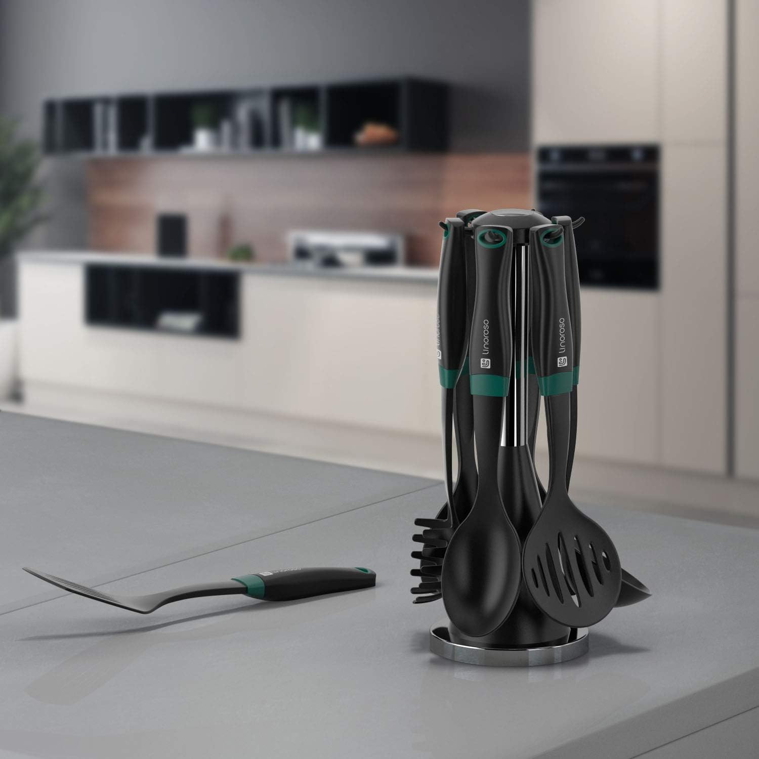 7-Piece Linoroso Nylon Kitchen Utensils Set with Rotating Stand