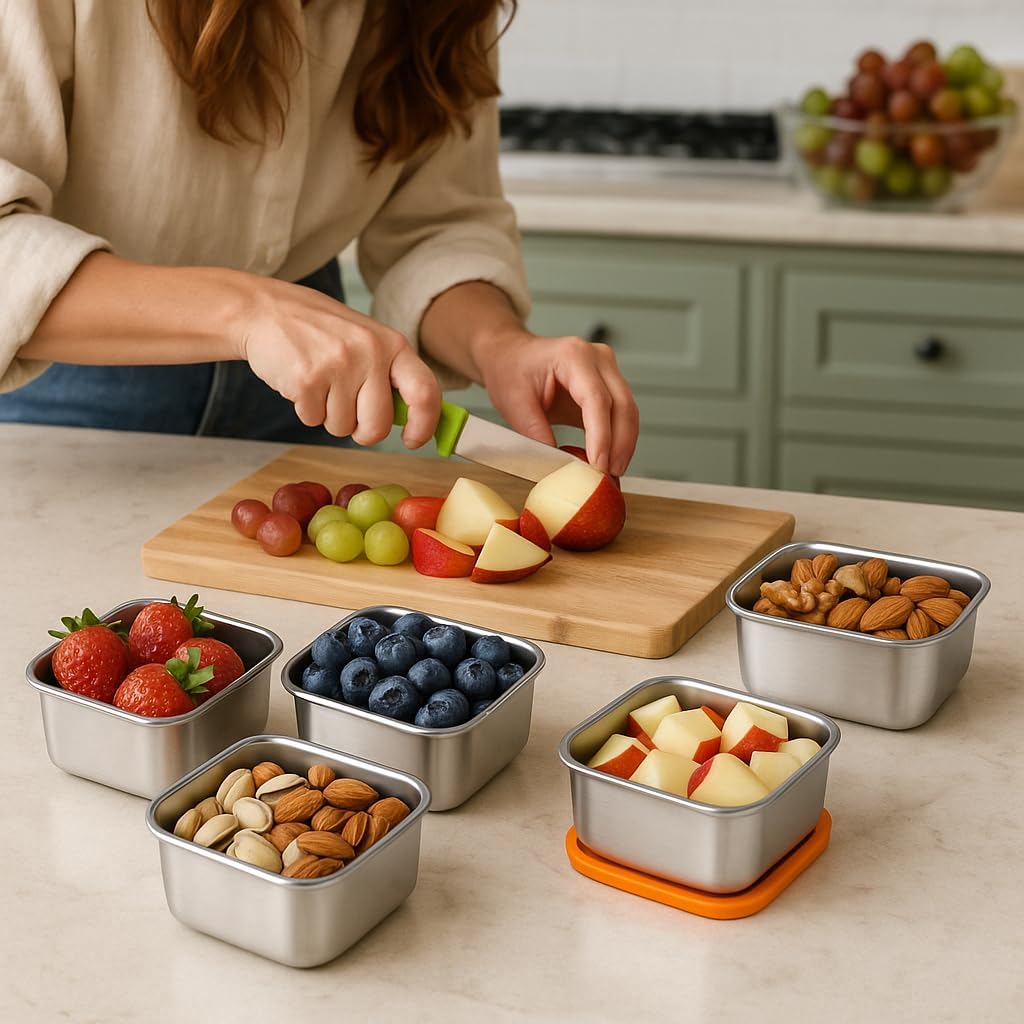 【Silicone Lids with Tight Seal】 Soft-fitting silicone lids help reduce spills and keep contents secure during transport. Great for lunch bags, backpacks, and on-the-go storage.