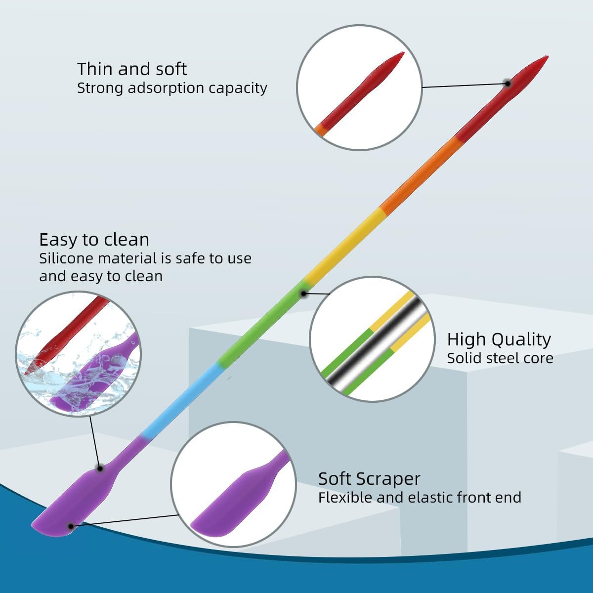 Gentle Non-Scratch & Non-Stick Friendly–The flexible silicone heads are ultra-gentle on all cookware. They seamlessly glide across non-stick surfaces, pots, and pans without causing any scratches or damage, preserving your kitchen investments.