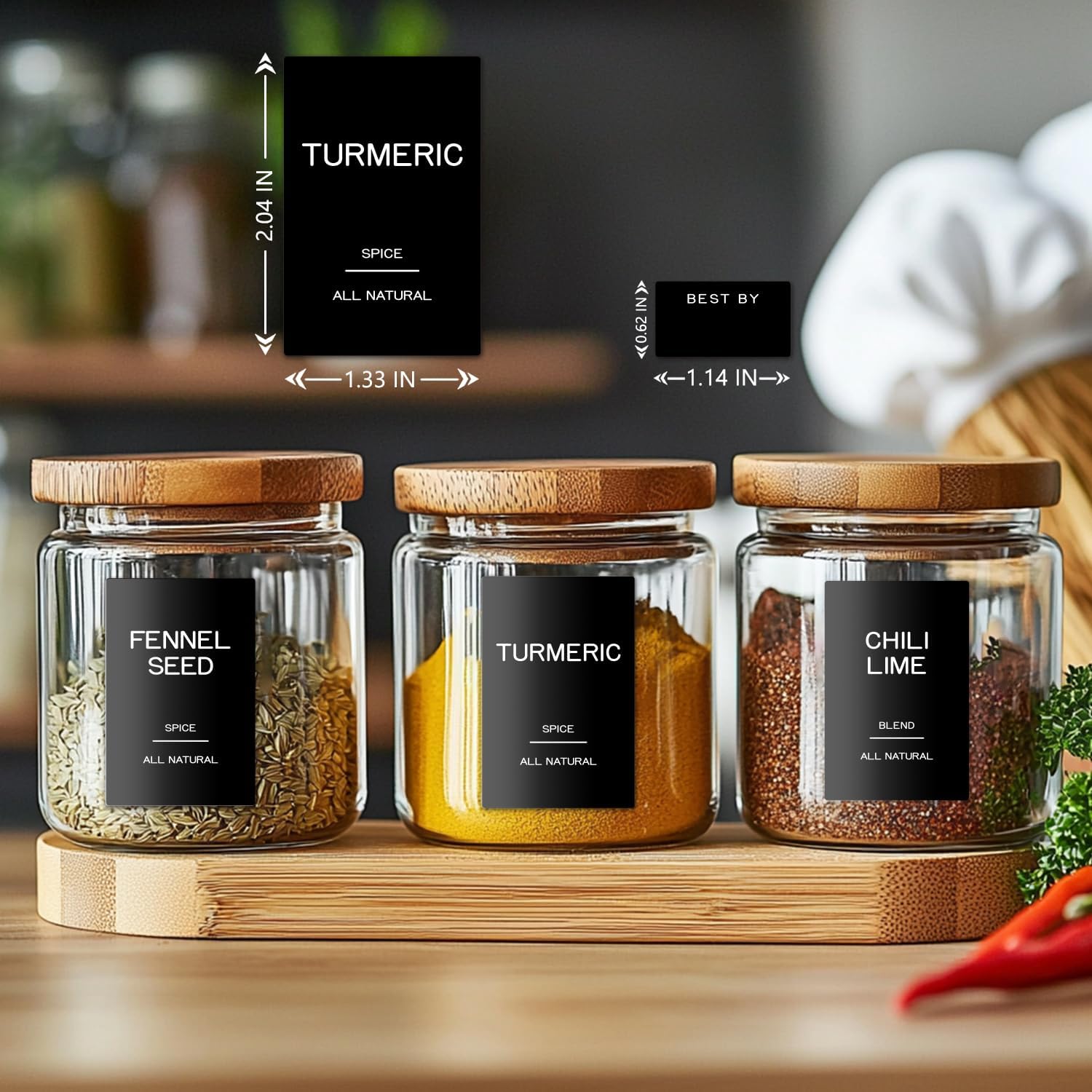 Sleek Minimalist Design: Modern Black matte square labels (2.04*1.33 inches) fit bamboo jars, round glass jars, or rectangular spice containers, adding a clean and stylish look to your kitchen.