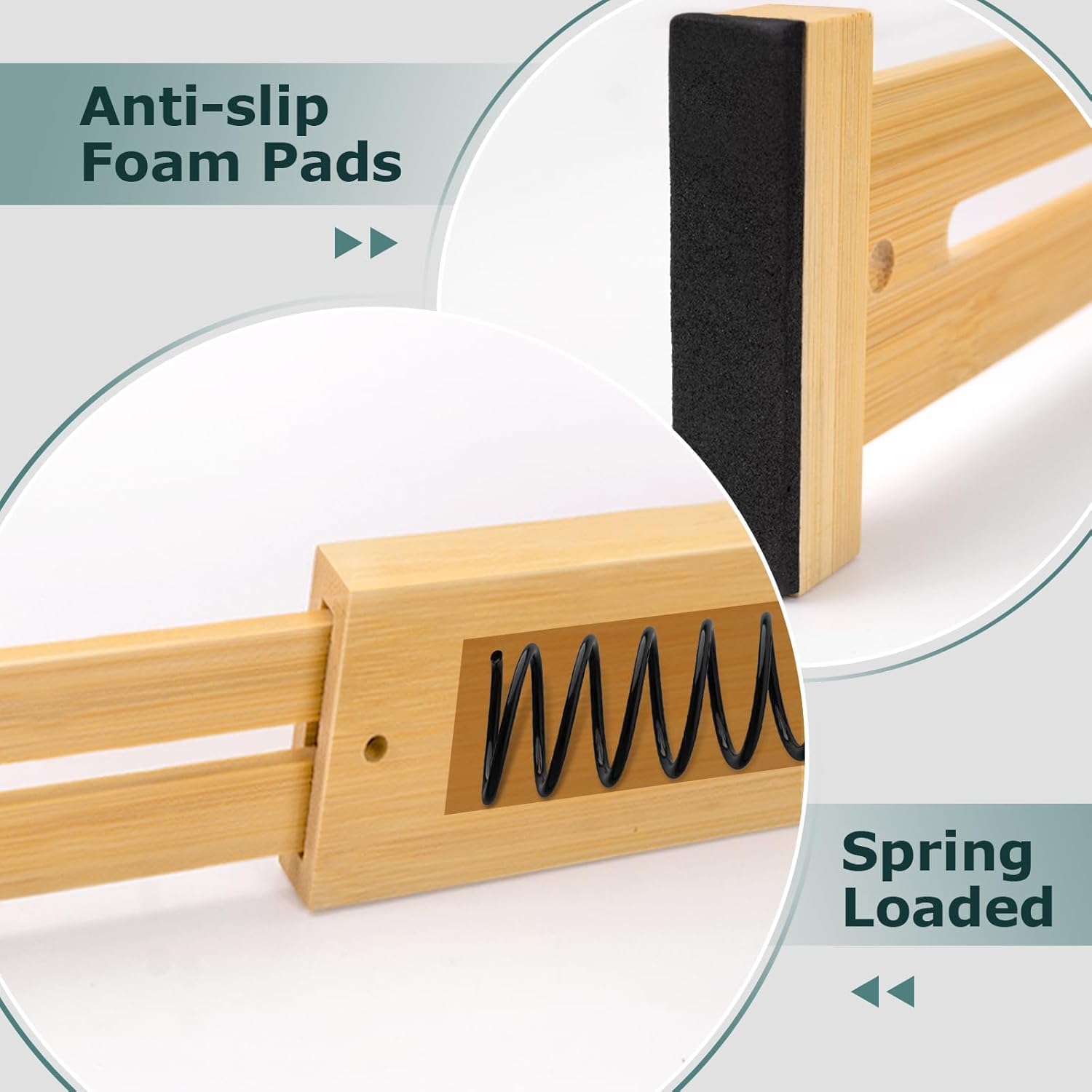 【Non-Slip Design】Both ends of these expandable bamboo drawer dividers are equipped with built-in foam pads, effectively safeguarding your drawers from scratches and ensuring they remain securely in place without slipping