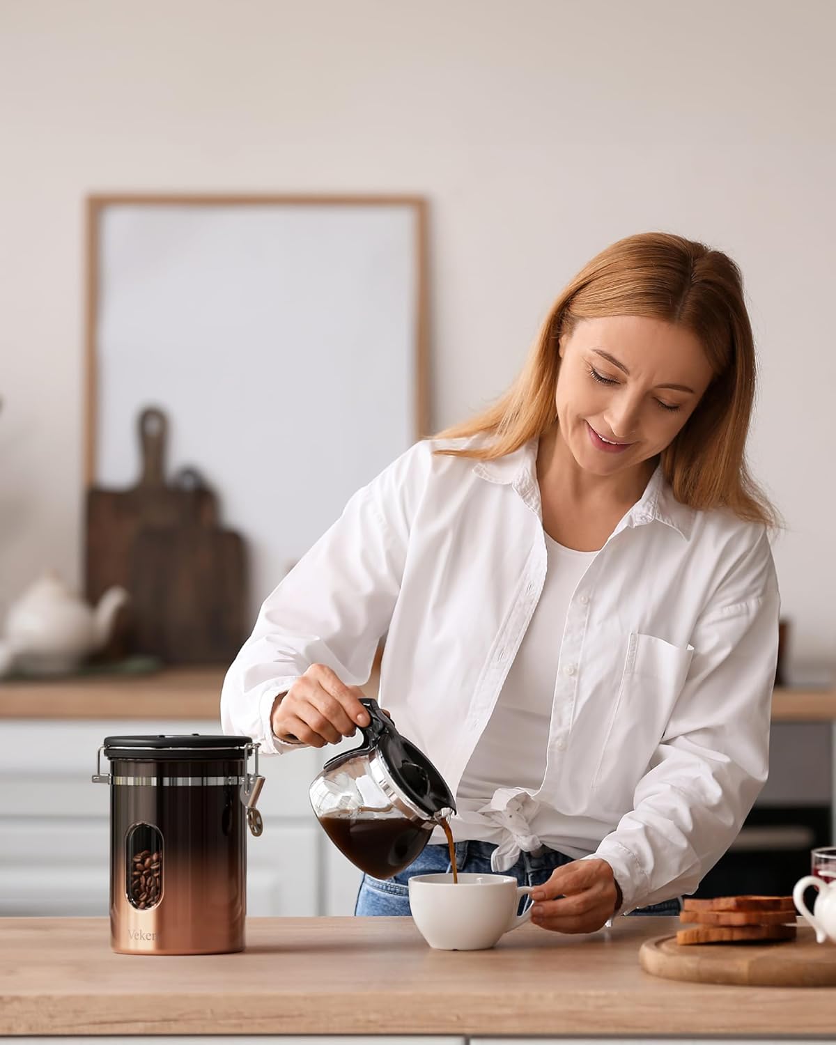 Gifts for Coffee Lover: This copper-colored jar is a stylish and functional gift for coffee lovers, friends, and family. It keeps coffee fresh and countertops tidy, making it a perfect choice for Mother’s or Father’s Day. Ideal for kitchen organization