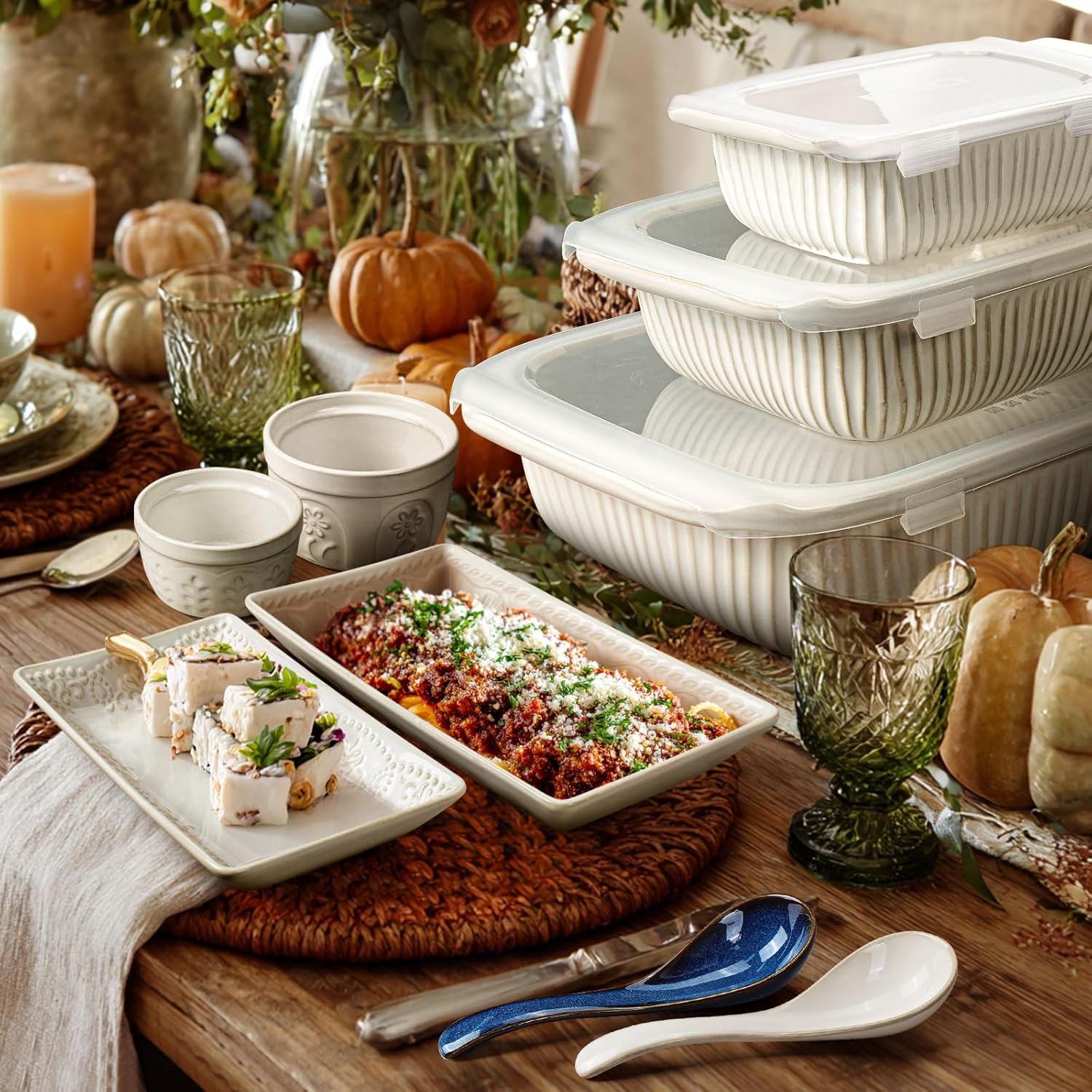 Elegant Serving Dishes for Entertaining – Modern minimalist ceramic bakeware set transitions seamlessly from cooking to stylish table presentation ideal housewarming gift for moms or family chefs