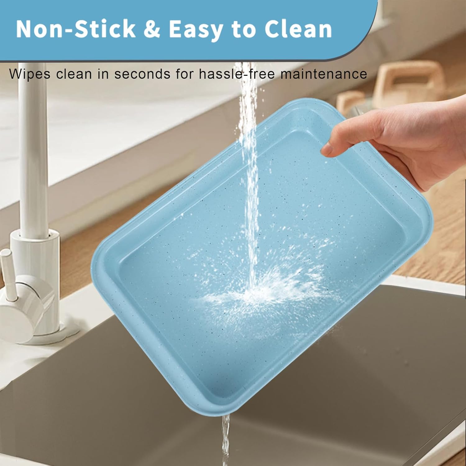 Non-Stick Baking Pans Set: The bakeware baking set is made from eco-friendly carbon steel material with non-stick coating for easy release, your baked goods come out easily without sticking, and cleanup is a breeze
