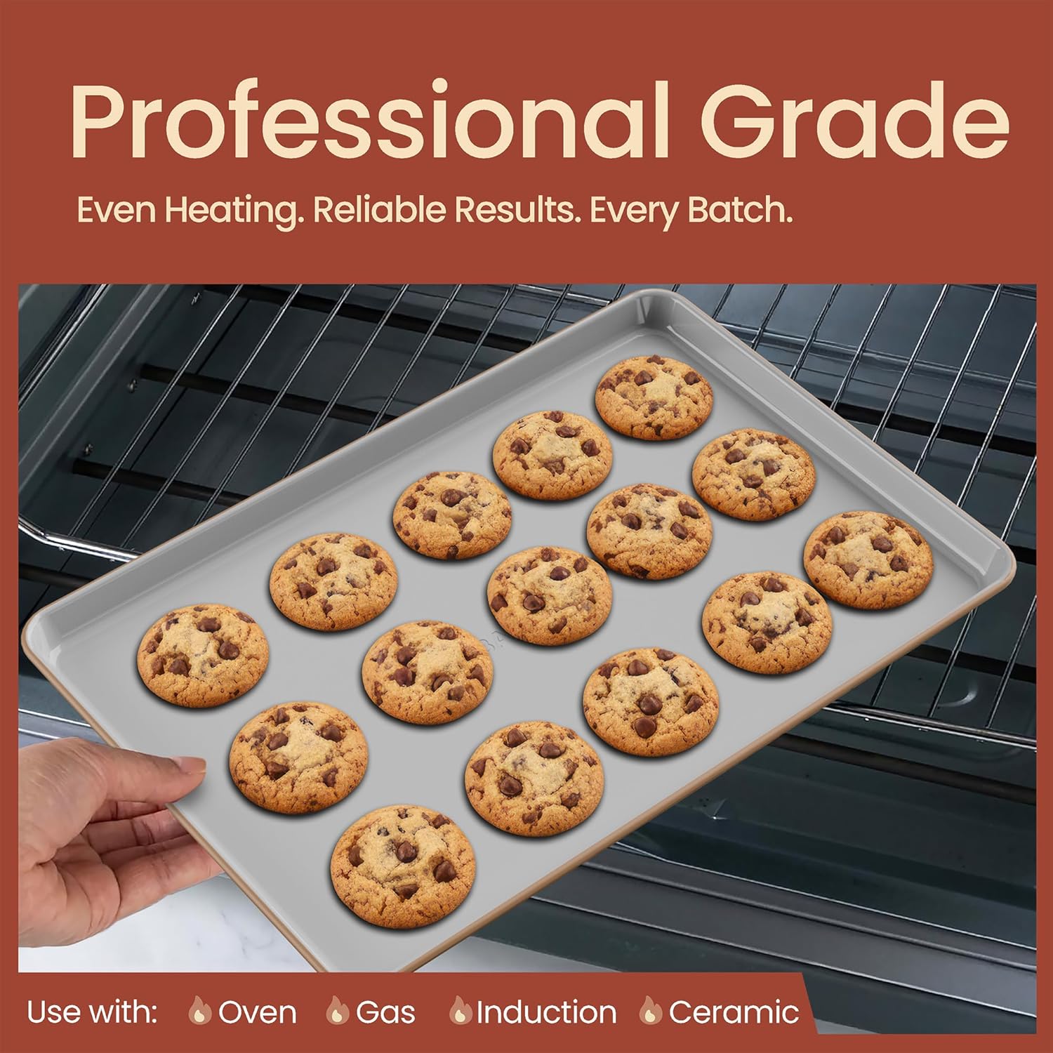 DURABLE AND EVEN HEAT DISTRIBUTION: Crafted from high-gauge aluminized steel, this bakeware set offers durability and excellent heat distribution for consistent and delicious results every time.