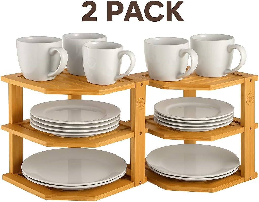 MULTIPURPOSE USE: Not just for dinnerware—use as a bathroom shelf for toiletries, a countertop riser for spices, or a corner rack for mugs and bowls. A truly multifunctional bamboo corner shelf.