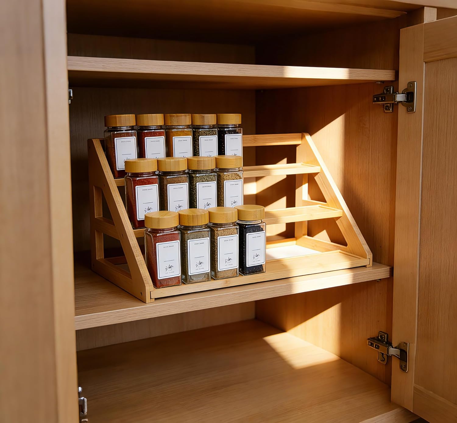 Space Saving Design: 3-tiered spice rack maximizes vertical storage space in your kitchen cabinet or countertop, allowing organized storage of spices jars and seasoning jars