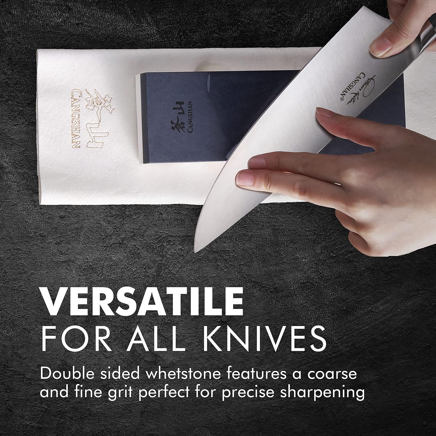 The knife sharpener and the double-sided whetstone feature a fine-grit coarse surface, allowing the knives to acquire a razor-sharp edge. The kit also features an Acacia wood block so that you can effortlessly rest your whetstone while you polish the blade.