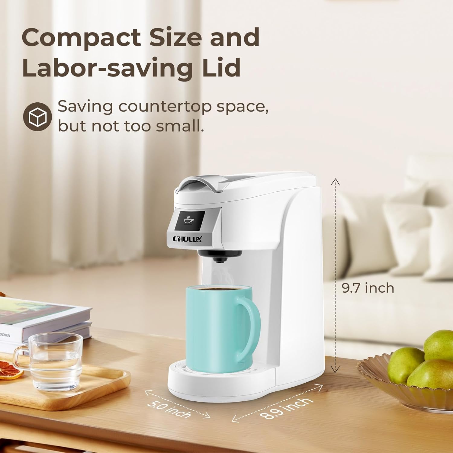 Less than 5.2″ wide, perfect for any countertop in your home or office