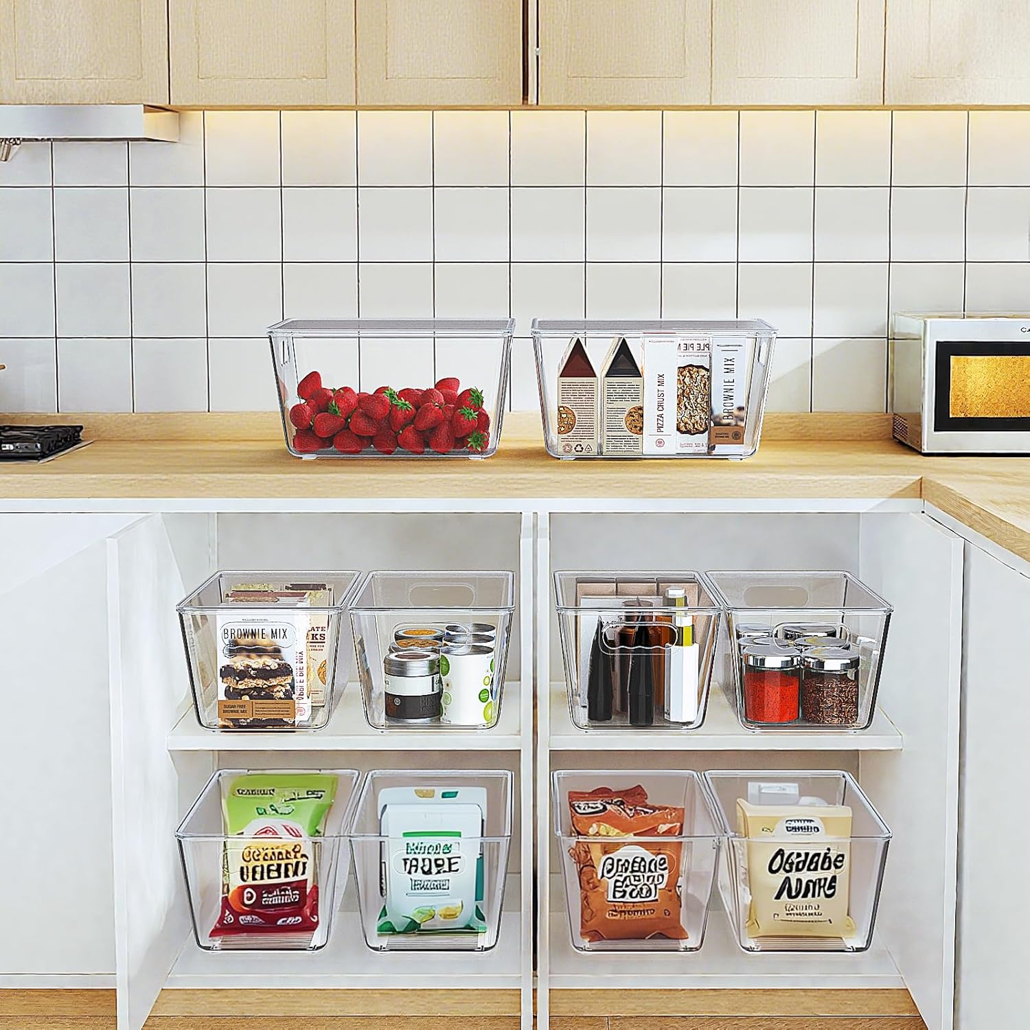 Enhance your kitchen’s functionality and keep it neat and organized with cabinet and drawer storage boxes, Tupperware food storage containers, and rotating snack racks.