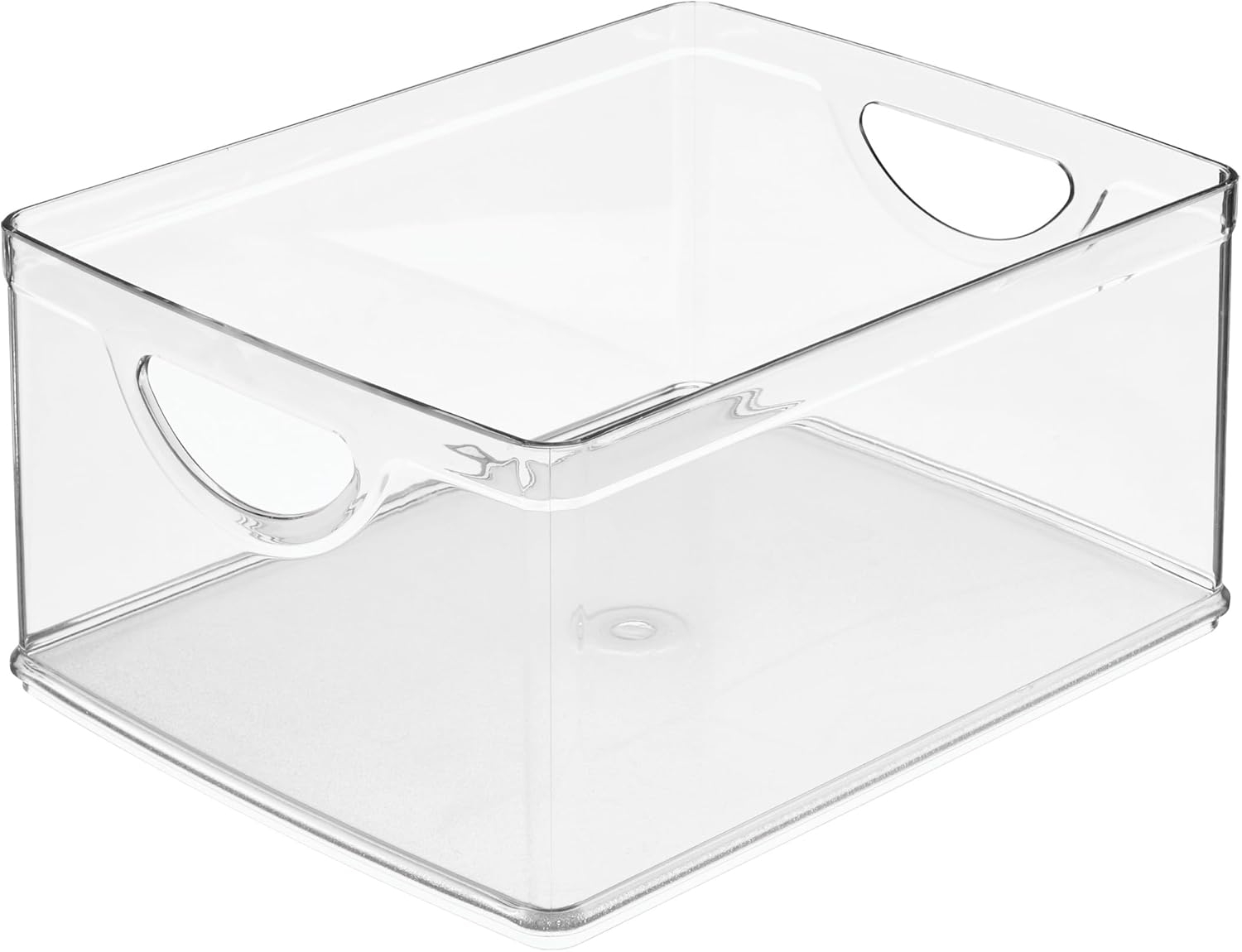 STACKABLE – This iDesign Stackable Cabinet Bin features a stackable, space-saving design ideal for organizing kitchen cabinets, pantry or fridge shelves, and countertops; Perfect for storing snacks, produce, canned goods, boxed foods, and more