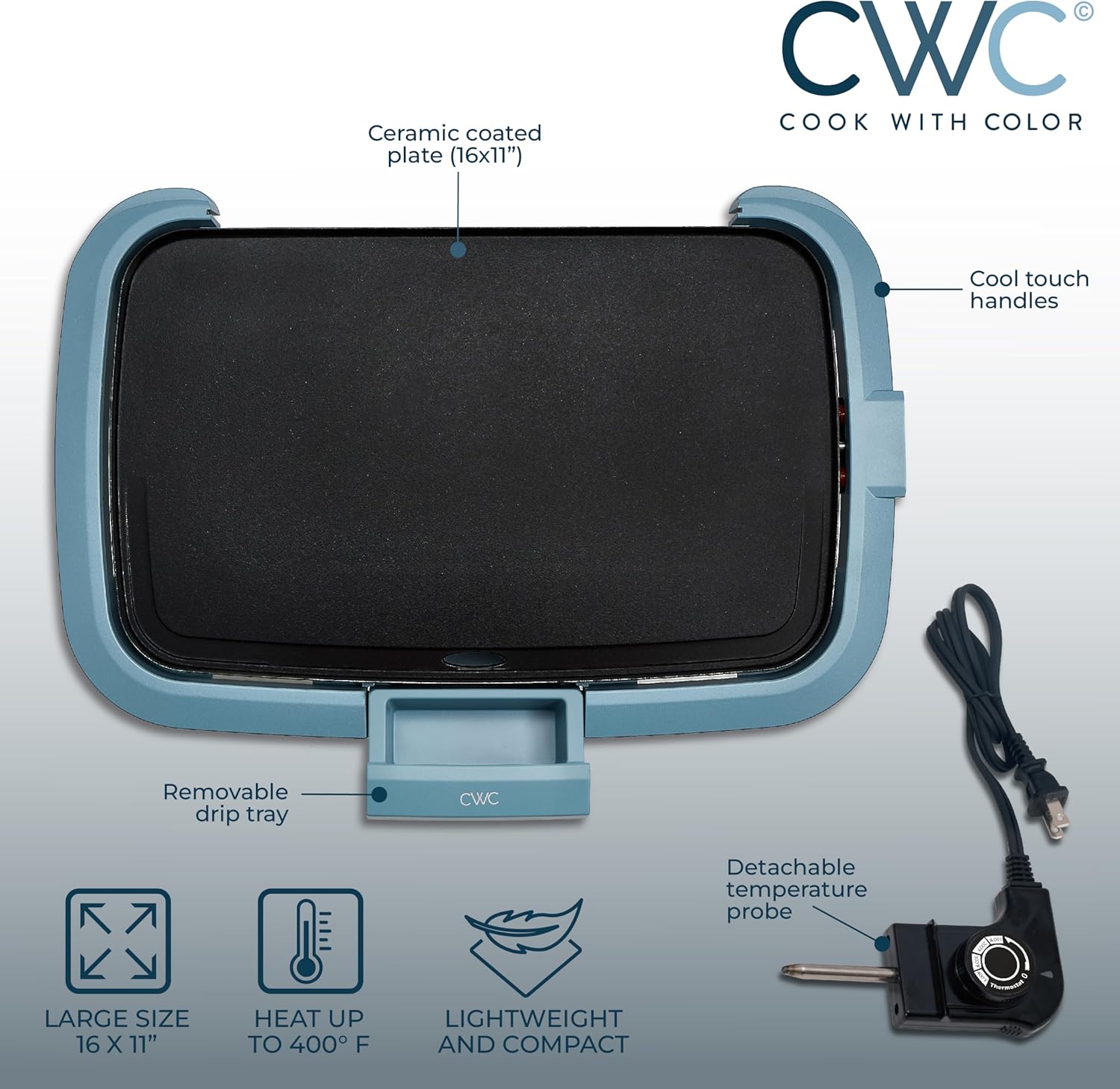 Easy Cleanup: The ceramic-coated nonstick surface is PFOA-free, ensuring healthier cooking with minimal oil and effortless cleanup. The removable drip tray catches excess grease, keeping your countertop mess-free.