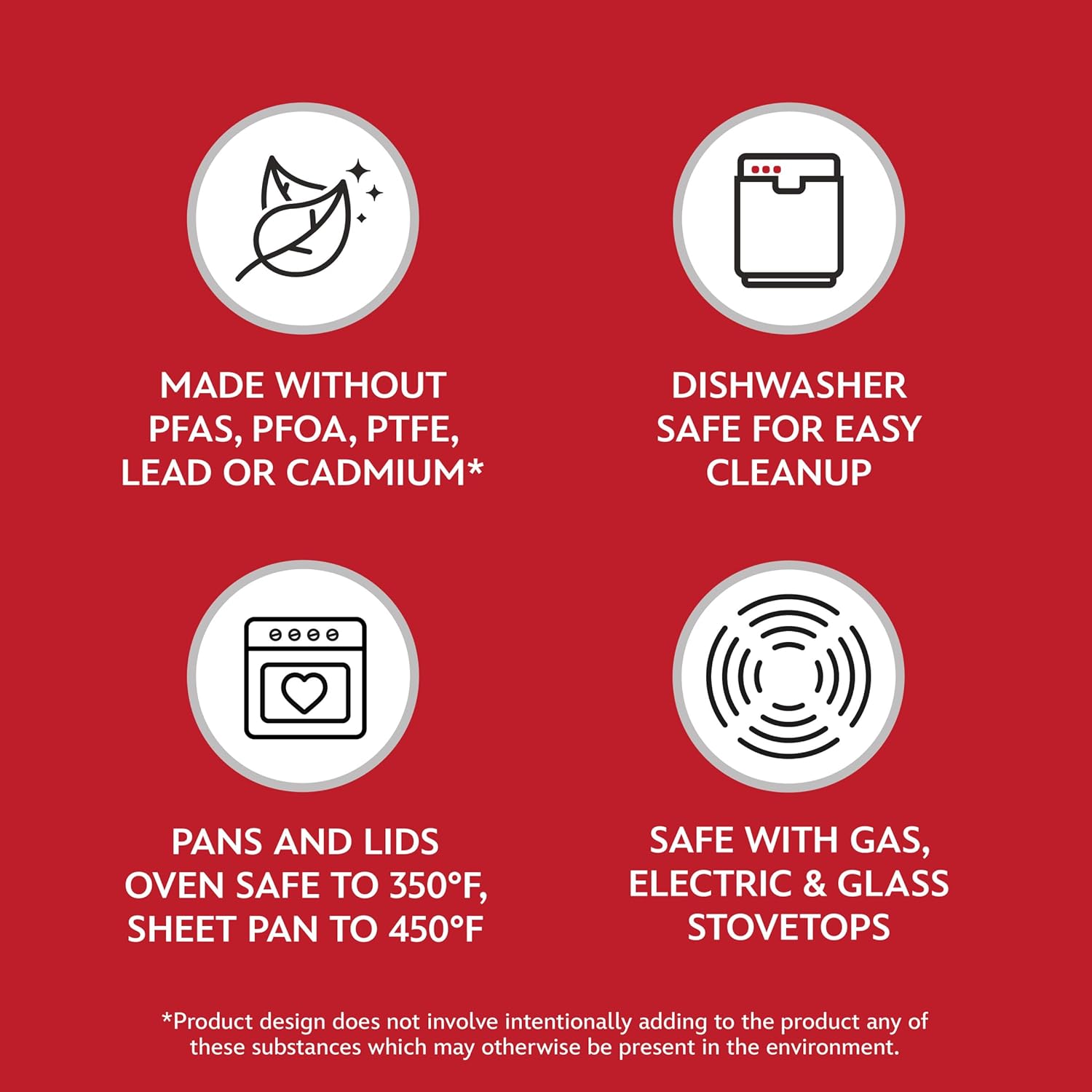 HEALTHY CERAMIC: Cookware is crafted with ceramic nonstick interior – made without PFAS, PFOA, PTFE, lead, or cadmium* – for healthy cooking using less oil. (*Product design does not involve intentionally adding to the interior nonstick coating any of these substances which may otherwise be present in the environment)