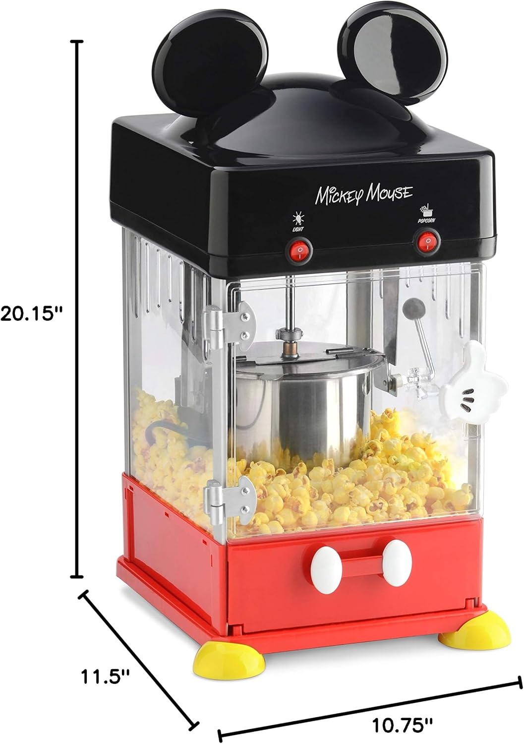 Complete Popcorn Cooker Set: This popcorn popper comes with an oil spoon, kernel scoop and 4 Mickey character serving cups for a fun and convenient popcorn popper experience