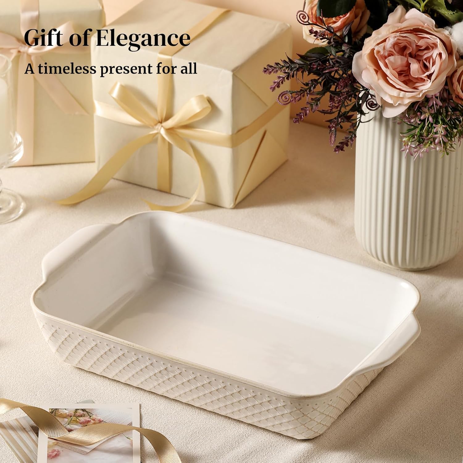 Thoughtful Gift Choice: Beautifully packaged and versatile in use, this lasagna baking dish makes a charming gift for weddings, housewarmings, birthdays, or holiday gatherings. With its elegant design and embossed detail, this embossed bakeware doubles as a decorative serving piece that looks beautiful on the dining table or kitchen shelf. A practical yet heartfelt gift that combines everyday function with timeless style.